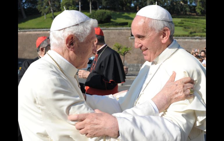Internacional | El Papa actual y el emérito acuden a la inauguración de una estatua Benedicto y Francisco se reúnen de nuevo Para esta ceremonia, en la cual se consagra el Estado pontificio a San José y San Miguel, el Papa Francisco había invitado expresamente a Benedicto XVI Por: EFE 5 de julio de 2013 - 10:42 hs CIUDAD DE MÉXICO (05/JUL/2013).- Los dos Papas que conviven en la Ciudad del Vaticano, Francisco y el emérito Benedicto XVI, volvieron a abrazarse públicamente durante la inauguración de una estatua del arcángel San Miguel en los jardines vaticanos. Para esta ceremonia en la que también se consagraba (dedicaba) el Estado pontificio a San José y San Miguel, el Papa Francisco había expresamente invitado a Benedicto XVI. El acto que se celebró a las 8:45 hora italiana (6:45 GMT) en la plaza ante el "Governatorato", sede del Gobierno de la Ciudad del Vaticano, y allí Joseph Ratzinger esperó la llegada de Francisco, quien fue inmediatamente a saludarle y abrazarle y estuvieron juntos durante toda la ceremonia. Francisco recordó que esta consagración era una iniciativa proyectada desde hace tiempo con la aprobación de Benedicto XVI y al papa volvió a dedicar palabras de "cariño y reconocimiento". "Queremos expresar nuestra gran alegría por tenerle aquí presente, junto a todos nosotros. Gracias de corazón". Del encuentro informó el portavoz de la Santa Sede, Federico Lombardi, que destacó el buen estad de salud del papa Ratzinger, y también se difundió una fotografía del momento del nuevo abrazo de los dos pontífices. El pasado 23 de marzo en la residencia pontifica de Castel Gandolfo se produjo el histórico encuentro entre el recién elegido (13 de marzo) Papa Francisco y Benedicto XVI, después de la renuncia de este al papado el 28 de febrero pasado. Benedicto XVI se había trasladado a Castel Gandolfo donde pasó dos meses mientras se acaban las obras de reestructuración del convento en el interior de los jardines vaticanos donde actualmente vive. Temas Europa Ciudad del Vaticano Papa Benedicto Papa Francisco Recibe las últimas noticias en tu e-mail Todo lo que necesitas saber para comenzar tu día Registrarse implica aceptar los Términos y Condiciones