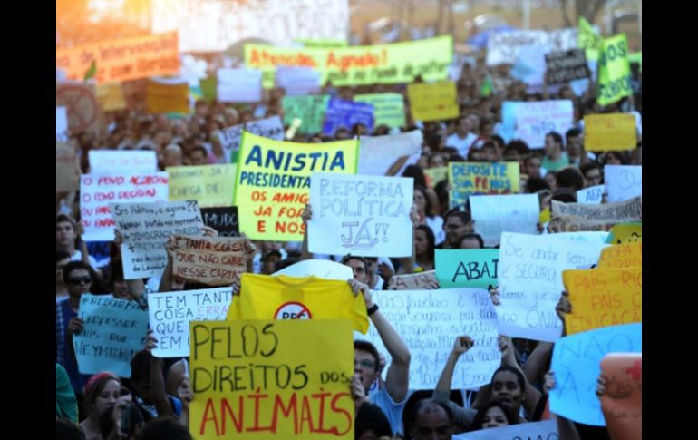 Internacional | Serán desplegados unos 6 mil 250 policías en las calles para mantener el orden Brasil celebrará su Independencia con nuevas protestas Serán desplegados unos 6 mil 250 policías en las calles para mantener el orden Por: EFE 6 de septiembre de 2013 - 10:25 hs En junio, cientos de miles de brasileños protestaron por la mala calidad de los servicios públicos. ARCHIVO / BRASILIA, BRASIL (06/SEP/2013).- Brasil celebrará mañana el Día de la Independencia en medio de nuevas protestas convocadas en casi todo el país y sobre todo en Brasilia, donde la presidenta Dilma Rousseff encabezará un desfile que puede ser un termómetro del malestar. Para el tradicional desfile cívico militar con que se conmemora cada año la independencia de Portugal, las autoridades de Brasilia han dicho que esperan un público de unas 100 milpersonas, pero en la internet otras 50 mil aseguran que participarán en protestas convocadas por diversos movimientos sociales. Solo uno de los varios grupos que convocan las protestas, que se identifica en las redes sociales como "Manifestación Brasilia", hoy garantizaba la presencia de 45 mil 275 personas. "Estamos cansados del Mundial (de futbol) más caro de la historia, de los políticos, de los intereses más altos del mundo, de profesores con salarios miserables, de obras públicas que nunca terminan, de la prensa comprada y manipulada", dice ese grupo en una larga enumeración de los motivos con que justifica las protestas. Frente a esas convocatorias, el Partido de los Trabajadores (PT), al que pertenece Rousseff, ha instado a su militancia a "salir a las calles en este 7 de septiembre para defender las banderas de la democracia y la justicia social" y dar un "claro respaldo" a la jefa de Estado. La Secretaría de Seguridad de la capital anunció que, a fin de garantizar el orden durante el desfile, serán desplegados unos 6 mil 250 policías y que tropas de las tres Fuerzas Armadas, en un número no precisado, estarán listas para intervenir si fuera necesario. El secretario de Seguridad de Brasilia, Sandro Avelar, ha dicho que "el servicio de inteligencia intentará identificar si en las eventuales protestas se infiltrarán grupos violentos", a fin de minimizar la posibilidad de enfrentamientos. También declaró que existen informaciones de que algunos grupos violentos que se han mantenido en las calles de Río de Janeiro y Sao Paulo desde junio pasado pretenden participar en las manifestaciones convocadas para Brasilia y advirtió de que las autoridades actuarán con "todo el rigor necesario". Brasilia también será sede mañana de un partido amistoso entre las selecciones de futbol de Brasil y Australia, al que se espera la asistencia de unos 50 mil espectadores, por lo cual las autoridades de la capital desplegarán a unos 4 mil policías en los alrededores del estadio Nacional Mané Garrincha. Durante la Copa Confederaciones, celebrada en Brasil en junio pasado en medio de las protestas, muchas de las manifestaciones se dirigieron a los estadios para reclamar por el elevado gasto público en ese evento y en el Mundial de 2014. Además de las protestas convocadas para mañana en Brasilia, numerosos grupos articulados por las redes sociales han llamado a sus partidarios a congregarse en Río de Janeiro, Sao Paulo y otras grandes ciudades del país. Las marchas anunciadas para mañana siguen la misma línea de las masivas manifestaciones que estremecieron al país durante las dos últimas semanas de junio pasado, que comenzaron tras una mínima alza de los precios del transporte y luego se convirtieron en reflejo de un generalizado malestar social hasta entonces oculto. En junio, cientos de miles de brasileños protestaron por la mala calidad de los servicios públicos como el transporte, la educación y la salud, por la corrupción y un sinfín de motivos, a los que el Gobierno ha intentado dar alguna respuesta. Rousseff anunció la contratación de médicos extranjeros para dar alguna satisfacción a las demandas en el área de salud e inversiones en el sector de transporte, así como propuso una reforma política para dar más transparencia a la gestión pública. Sin embargo, su popularidad cayó de cerca del 70 por ciento a un 30 por ciento en medio de las manifestaciones, aunque desde entonces ha tenido una ligera recuperación para situarse en torno al 40 por ciento, según encuestas divulgadas a mediados de agosto. Temas América Latina Brasil Manifestaciones en el mundo Dilma Rousseff Recibe las últimas noticias en tu e-mail Todo lo que necesitas saber para comenzar tu día Registrarse implica aceptar los Términos y Condiciones