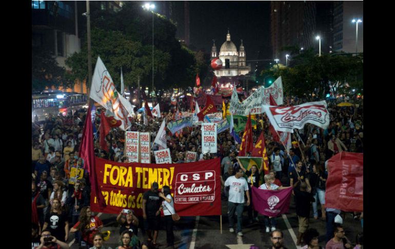 SAO PAULO, BRASIL (01/JUL/2017).- Miles de manifestantes montaron barricadas y paralizaron diversos sectores de la economía este viernes durante una protesta contra el ajuste del presidente brasileño Michel Temer, que esta semana se convirtió en el primer mandatario en funciones en ser denunciado por corrupción.La medida de fuerza fue debilitada por la negativa del servicio de transporte público de Sao Paulo de sumarse y no logró repetir el impacto que tuvo la huelga general el pasado 28 de abril.Por la noche se registraron algunos incidentes entre fuerzas de seguridad y manifestantes en Rio de Janeiro, que incluyó la quema de residuos en la vía pública y la intervención del cuerpo de bomberos, aunque la jornada se desarrolló mayormente en forma pacífica.Más temprano, la policía de Sao Paulo dispersó con bombas de estruendo a grupos que obstaculizaban calles y también se registraron bloqueos en el acceso del aeropuerto paulista de Congonhas y el internacional de Rio.En Brasilia, la paralización de los transportes públicos fue total, pero no hubo movilizaciones de magnitud."La evaluación del día es positiva. Sectores importantes paralizaron sus actividades, servidores públicos, bancario, químicos, metalúrgicos (...) Toda esa movilización es para mostrar que la población está contra las reformas de Temer", dijo Douglas Izzo, dirigente de la Central Única de Trabajadores (CUT) de Sao Paulo.La central calculó que unas 40 mil personas se congregaron en la capital económica del país para reclamar contra la flexibilización laboral -que debe ser votada próximamente en el Senado- y la reforma de las jubilaciones."Estamos resistiendo con fuerza, garra y lucha. Los convoco a ir a Brasilia el día de la votación", dijo Vagner Freitas, presidente de la CUT en el discurso de cierre del acto principal.