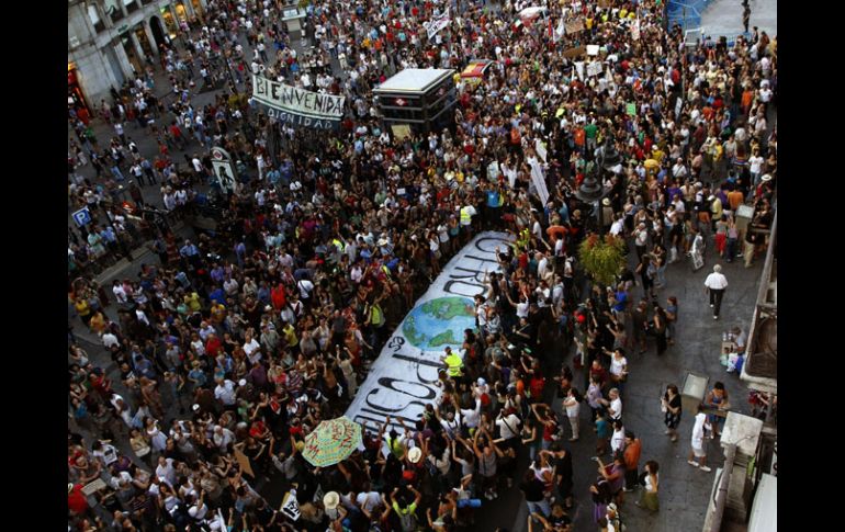 Internacional | ''Indignados'' exigen en Madrid detener la crisis Breves del mundo . Por: EL INFORMADOR 24 de julio de 2011 - 02:54 hs Los cientos de manifestantes de diversos puntos de España avanzan hacia la céntrica Puerta del Sol. EFE / Chávez está muy animado en Cuba, afirma CorreaQUITO, ECUADOR (24/JUL/2011).- El presidente de Ecuador, Rafael Correa, dijo que vio “muy animado” a su homólogo venezolano, Hugo Chávez, a quien visitó el pasado jueves en Cuba donde se somete a un tratamiento de quimioterapia contra el cáncer, según una declaración difundida. Correa señaló que se reunió con Chávez y los líderes cubanos Fidel y Raúl Castro en el Centro de Investigaciones Médico Quirúrgicas de La Habana, que describió como un “hospital espectacular”. Miles de brasileños huyen por las inundacionesSAO PAULO.- Las inundaciones provocadas por las lluvias intensas han desplazado de sus hogares a casi 20 mil personas en el Sur de Brasil, informaron funcionarios de la Defensa Civil. El Departamento de la Defensa Civil del Estado de Río Grande do Sul informó que las lluvias torrenciales de los últimos tres días han obligado a 19 mil 363 personas a buscar refugio con parientes o amigos, o bien en escuelas públicas y gimnasios. “Indignados” exigen en Madrid detener la crisisMADRID.-Varios centenares de “indignados” españoles se manifestaron contra la crisis económica en las afueras de Madrid tras pasar un mes caminando desde sus respectivas provincias. Los manifestantes partieron de Barcelona y Bilbao en el Norte, Valencia en el Este y Cádiz en el Sur el 25 de junio. A lo largo de la ruta se les unieron otras personas furiosas con el elevado desempleo en España, superior a 21%, y lo que consideran una total incapacidad del Gobierno para encarar la crisis. Temas Breves del mundo Lee También Sociales: El Informador inicia una nueva etapa con la moderna imprenta "Doña Stella" ¿Por qué se celebra Halloween? La historia detrás del Día de Brujas La FGR investiga presunto campo de entrenamiento Trabajadores de país europeo se irán a huelga contra jornada laboral de 13 horas Recibe las últimas noticias en tu e-mail Todo lo que necesitas saber para comenzar tu día Registrarse implica aceptar los Términos y Condiciones