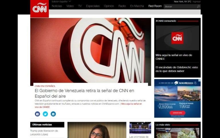 VENEZUELA (15/FEB/2017).- Luego de que este miércoles el gobierno de Venezuela, presidido por Nicolás Maduro, bloqueara la señal de CNN en Español, la televisora burló esta censura replicando su transmisión a través de la plataforma YouTube.La mayor parte de la tarde, el canal ha dedicado su programación a reaccionar a la medida de las autoridades venezolanas mediante entrevistas con expertos y opiniones de sus principales figuras. Además, el canal ha iniciado una campaña en sus redes sociales con la etiqueta #CNNEcensurado.La Sociedad Interamericana de Prensa (SIP) calificó de "atentado contra la libertad de prensa" la decisión del Gobierno de Venezuela de cancelar la señal de la cadena de noticias CNN en Español de la programación por cable del país.Roberto Rock, presidente de la Comisión de Libertad de Prensa e Información de la SIP, rechazó la cancelación "por tratarse de una represalia del Gobierno de Venezuela contra los mensajeros, parte de su estrategia para proteger y defender el discurso y la verdad oficial".El presidente de Venezuela, Nicolás Maduro, acusó a la cadena estadounidense de ser "un instrumento de guerra en manos de verdaderas mafias" y de promover una intervención masiva en el país caribeño en alianza con el Departamento de Estado de Estados Unidos.La Comisión Nacional de Telecomunicaciones (Conatel) de Venezuela abrió un "procedimiento sancionatorio administrativo" contra CNN en Español por "presuntamente" atentar "contra la paz y la estabilidad democrática" del país y ordenó como "medida preventiva" la suspensión y salida "inmediata" de las transmisiones del canal.Las operadoras de cable venezolanas dejaron de transmitir la señal del canal minutos después de la difusión del comunicado de Conatel."CNN y el Departamento de Estado le están imponiendo una política equivocada hacia Venezuela, están promoviendo una intervención general, masiva y una agresión contra Venezuela. ¿Quién lo está promoviendo? CNN, que es un instrumento de guerra en manos de verdaderas mafias", afirmó Maduro dirigiéndose al presidente, Donald Trump.La semana pasada, CNN en español transmitió un reportaje titulado "Pasaportes en la sombra" (clic para verlo) sobre una supuesta red de venta de pasaportes venezolanos a ciudadanos de países de Oriente Medio a cambio de elevadas sumas económicas.