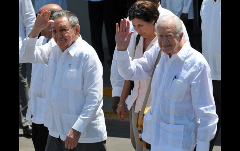 Internacional | El ex presidente de EU se entrevistó en la mañana con Fidel Castro Califica Raúl Castro a Carter como 'hombre honesto' James Carter concluyó su visita de tres días a Cuba tras reunirse con Fidel Castro y disidentes cubanos Por: NTX 30 de marzo de 2011 - 17:42 hs El presidente cubano, Raúl Castro (i), despide al expresidente de Estados Unidos Jimmy Carter (d). EFE / LA HABANA, CUBA (30/MAR/2011).- El presidente cubano Raúl Castro calificó hoy al ex mandatario estadounidense Jimmy Carter como 'un hombre honesto', y consideró 'buena' su visita privada de tres días a la isla, que concluyó este miércoles. Castro despidió en el aeropuerto de esta capital a Carter, quien se entrevistó en la mañana durante una hora con el líder cubano Fidel Castro, su anfitrión en la anterior visita en mayo de 2002. En rueda de prensa, el ex jefe de la Casa Blanca pidió el cese del embargo económico de Washington, el respeto a los derechos humanos en la isla, y opinó que el contratista estadounidense Alan Gross debe ser liberado. Gross fue condenado por un tribunal cubano a 15 años de prisión, acusado de 'actos contra la independencia o integridad territorial' de Cuba, pero Carter dijo que es inocente de esos cargos. El político demócrata también consideró que deben ser excarcelados los cinco agentes cubanos convictos de espionaje en Estados Unidos, por haber estado ya 12 años en prisión, y abogó por una mejoría en las relaciones bilaterales. Raúl Castro, quien platicó el martes durante seis horas con Carter, reiteró que La Habana sigue dispuesta a dialogar con el gobierno estadounidense sobre cualquier tema, pero en términos de igualdad. 'Sin condicionamientos y con absoluto respeto a la independencia y soberanía cubanas', agregó el mandatario isleño. Carter, a quien acompañó su esposa Rosalynn, se reunió en La Habana con líderes de la pequeña comunidad judía y el cardenal Jaime Ortega, así como con grupos opositores al gobierno de Castro, que le pidieron interceda a favor de las libertades civiles. Temas América Latina Cuba Fidel Castro Lee También Sociales: Subasta de Arte, obras a beneficio de Helen Keller Hay mejoría, pero el futuro es “incierto” Familia Castro aparece en público, tras supuesto distanciamiento Chivas y América empatan en partido amistoso Recibe las últimas noticias en tu e-mail Todo lo que necesitas saber para comenzar tu día Registrarse implica aceptar los Términos y Condiciones
