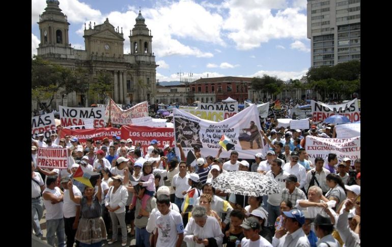 Internacional | Participaron este domingo en la 'Marcha por la vida y la dignidad', para exigir justica Campesinos de Guatemala exigen respeto por matanza de indígenas Participaron este domingo en la 'Marcha por la vida y la dignidad', para exigir justicia por la muerte de ocho indígenas a manos del ejército el 4 de octubre Por: AFP 14 de octubre de 2012 - 19:10 hs La 'Marcha por la vida y la dignidad' recorrió aproximadamente un kilómetro y concluyó en la Plaza de la Constitución. AFP / GUATEMALA, GUATEMALA (14/OCT/2012).- Miles de campesinos de Guatemala participaron este domingo en la 'Marcha por la vida y la dignidad', para exigir justicia por la muerte de ocho indígenas a manos del ejército el 4 de octubre, y demandaron la renuncia del presidente Otto Pérez y varios de sus ministros. "Te equivocaste en Toto (Totonicapán) maldito genocida (en alusión al presidente de Guatemala, Otto Pérez Molina)", "Hay un militar que dio la orden y ese fue Otto Pérez Molina", rezaban algunas de las mantas que portaban los manifestantes que llegaron a la capital de todo el país. "La masacre de nuestros hermanos de Totonicapán debe cambiarse por un clima de respeto, de trabajo arduo y creativo para solucionar nuestros problemas", afirmó a la AFP Manuel Baldizón, ex candidato presidencial del partido Libertad Democrática Renovada. "Es tiempo de lograr la unión nacional, porque Guatemala es de todos los guatemaltecos y comprendiendo esto debemos pasar a tener la capacidad de conversar, de dialogar, de concretar un gran acuerdo nacional", aconsejó. Las demandas coinciden con la lluvia de críticas de diversos sectores y de organizaciones internacionales al gobierno, por el violento desalojo que perpetraron los soldados en una manifestación indígena en Totonicapán, 180 km al oeste de la capital, que dejó ocho muertos y más de 30 heridos. Los manifestantes, en sus discursos, insistieron en la renuncia de Pérez Molina, así como sus ministros de Defensa, Ulises Anzueto y Gobernación, Mauricio López Bonilla, a quienes señalan como los "responsables de dar las órdenes a los soldados que enviaron a disuadir a los manifestantes". También exigieron que el gobierno atienda las causas de fondo del conflicto histórico del país, como son el hambre, la salud, la educación y el alto costo de la vida, así como el "irrestricto respeto" a la interculturalidad. La 'Marcha por la vida y la dignidad' recorrió aproximadamente un kilómetro y concluyó en la Plaza de la Constitución, frente al Palacio Nacional de la Cultura. El pasado jueves, el coronel Juan Chiroy y ocho soldados, entre ellos dos mujeres, fueron detenidos y acusados de "ejecución extrajudicial", primer caso de militares que serán procesados por una matanza tras el fin en 1996 de la guerra civil. Temas América Latina Indígenas Guatemala Lee También José Jerí asume como presidente de Perú Congreso de Perú destituye como presidenta a Dina Boluarte Chivas viaja con ‘Chicharito’ y Robinho al amistoso ante América en Estados Unidos Estas son las bajas de Chivas para el próximo Clásico Nacional Recibe las últimas noticias en tu e-mail Todo lo que necesitas saber para comenzar tu día Registrarse implica aceptar los Términos y Condiciones