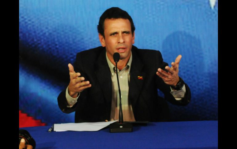 Internacional | Henrique Capriles se enfrentará a Nicolás Maduro en los comicios del 14 de abril Capriles anuncia oficialmente la candidatura de la oposición Henrique Capriles se enfrentará a Nicolás Maduro en los comicios del 14 de abril en Venezuela Por: EFE 10 de marzo de 2013 - 18:21 hs CARACAS, VENEZUELA (10/MAR/2013).- Henrique Capriles aceptó el domingo la candidatura presidencial de la oposición para los comicios anticipados del 14 de abril en Venezuela. Capriles competirá por segunda ocasión como candidato presidencial de la oposición. La primera fue en el 2012. Capriles se enfrentará al candidato oficialista Nicolás Maduro, actual presidente encargado de Venezuela y quien fue designado sucesor por el fallecido mandatario Hugo Chávez. "Yo le quiero decir hoy a nuestro pueblo... yo voy a luchar con ustedes, con todos ustedes", dijo Capriles en un mensaje dirigido al aceptar su candidatura "Van a tener que derrotarme con votos y voy a pelear", señaló. "Cuésteme lo que me cueste", añadió. Temas América Latina Venezuela Elecciones en Venezuela Henrique Capriles Lee También Chivas viaja con ‘Chicharito’ y Robinho al amistoso ante América en Estados Unidos Estas son las bajas de Chivas para el próximo Clásico Nacional Chivas y América calientan en redes el Clásico Nacional de la Fecha FIFA Suspenden elecciones estudiantiles en el CUCSH por violencia (VIDEO) Recibe las últimas noticias en tu e-mail Todo lo que necesitas saber para comenzar tu día Registrarse implica aceptar los Términos y Condiciones