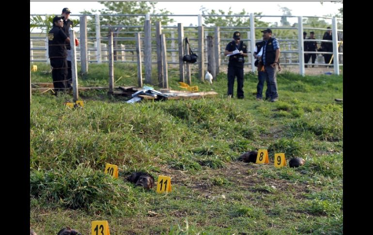 Internacional | Presumen que habría dirigido a los sicarios que asesinaron y decapitaron a 27 personas Capturan a nuevo implicado en matanza de Guatemala Presumen que habría dirigido a los sicarios que asesinaron y decapitaron a 27 personas Por: EL INFORMADOR 24 de mayo de 2011 - 11:07 hs El crimen fue perpetrado el 14 de mayo en una finca del departamento fronterizo de Petén. AFP / GUATEMALA (24/MAY/2011).- La Policía de Guatemala capturó este martes a un sospechoso de dirigir a los sicarios del cartel mexicano Los Zetas que asesinaron y decapitaron a 27 campesinos en una finca del norte del país el 14 de mayo, informó el presidente Alvaro Colom. "Al parecer esta persona fue la responsable de dirigir al grupo que asesinó a los campesinos" en el departamento de Petén, dijo Colom en rueda de prensa, poco después de que el sospechoso, el guatemalteco Elder Estuardo Morales Pineda, fuera detenido por los agentes. Morales, cuya edad no ha sido revelada, fue atrapado este martes en San Benito, un municipio de Petén, departamento fronterizo con México, cerca de la finca donde fueron asesinados los 27 labriegos, incluidas dos mujeres, en una matanza que conmovió a toda Centroamérica. "Esta persona fue detenida en el barrio El Trébol de San Benito, sindicada de los delitos de plagio o secuestro y asesinato", declaró a la AFP el portavoz policial Donald González. El portavoz explicó que la aprehensión de Morales, a quien se le conoce con el apodo de 'El Pelón', fue posible "gracias al trabajo de inteligencia que se ha realizado en la zona" de la matanza. Los sicarios ejecutaban a los trabajadores mientras les preguntaban donde estaba el dueño de la finca, Otto Salguero, con el fin de matarlo. Luego de la masacre, el ganadero comenzó a ser investigado por sospechas de que está vinculado con el narcotráfico, lo que fue negado por sus padres. Temas América Latina Guatemala Homicidio Lee También Congreso de Perú destituye como presidenta a Dina Boluarte Detienen a presunto homicida en Lomas de Oblatos Chivas viaja con ‘Chicharito’ y Robinho al amistoso ante América en Estados Unidos Estas son las bajas de Chivas para el próximo Clásico Nacional Recibe las últimas noticias en tu e-mail Todo lo que necesitas saber para comenzar tu día Registrarse implica aceptar los Términos y Condiciones