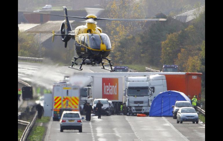Internacional | Unos 20 automóviles y siete camiones articulados estaban involucrados en el incidente Carambola en Gran Bretaña deja 44 víctimas Decenas de bomberos tuvieron que rescatar a varias personas que quedaron atrapadas en los coches, y la carretera fue cortada en ambas direcciones Por: NTX 5 de noviembre de 2011 - 07:42 hs La carambola que involucró al menos 27 vehículos en una autopista del suroeste de Inglaterra dejó al menos 44 víctimas. EFE / LONDRES, GRAN BRETAÑA (05/NOV/2011).- Una carambola que involucró al menos 27 vehículos en una autopista del suroeste de Inglaterra dejó al menos 44 víctimas, entre muertos y heridos, luego que dos camiones habrían estallado, reportaron autoridades locales. Un número no confirmado de personas han resultado muertas tras la colisión en la autopista M5 en el condado de Somerset, en uno de los peores accidentes de tráfico registrados en Reino Unido. Unos 20 automóviles y siete camiones articulados estaban involucrados en el incidente de la autopista de Taunton. Un portavoz de la Policía de Avon y Somerset, dijo que "algunas" personas "habían perdido trágicamente sus vidas". Las imágenes de varios noticieron de la televisión británica mostraron una fila de autos y camiones en llamas tras el accidente masivo. Los equipos de emergencia señalaron que la causa del accidente no estaba clara, porque no había informes de fuertes lluvias o niebla en la zona. Decenas de bomberos tuvieron que rescatar a varias personas que quedaron atrapadas en los coches, y la carretera fue cortada en ambas direcciones Por su parte, el responsable del Servicio de Bomberos de Somerset y Devon, Paul Slaven, ha descrito este accidente como "la peor colisión de tráfico que nadie pueda recordar", según ha informado la cadena británica BBC. "El incidente fue muy, muy complicado y los efectivos (policiales y de Emergencias) se vieron literalmente con una masiva bola de fuego", indicó una fuente de la policía, quien añadió que algunos automóviles quedaron calcinados Temas Europa Accidentes en el mundo Gran Bretaña Recibe las últimas noticias en tu e-mail Todo lo que necesitas saber para comenzar tu día Registrarse implica aceptar los Términos y Condiciones