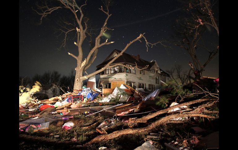 Internacional | Las muertes ocurrieron en Harrisburg, al sur de Illinois Causan al menos 10 muertos tornados en EU Los 16 tornados han afectado los estados de Kentucky, Indiana, Kansas, Missouri, Nebraska, Oklahoma e Illinois Por: NTX 29 de febrero de 2012 - 12:07 hs Afectaciones del tornado pueden ser apreciadas en Kansas. AFP / WASHINGTON, ESTADOS UNIDOS (29/FEB/2012).- Una escalada de tornados y tormentas severas devastó al Medio Oeste dejando al menos 10 muertos y cientos de heridos y desaparecidos, mientras otros meteoros avanzan en Kentucky donde se alertó a la población y comenzaron las evacuaciones. Las muertes ocurrieron en Harrisburg, al sur de Illinois, donde se reportaron hasta el momento una cifra no especificada de heridos y desaparecidos. Eric Gregg, alcalde de Harrisburg, indicó a la cadena CNN que la cifra de fatalidades pudiera aumentar debido a que la ciudad fue prácticamente arrasada por un tornado a las 02:00 horas locales. Agregó que las brigadas de rescate esperan encontrar sobrevivientes entre los escombros de edificios, residencias, iglesias y hospitales en una trayectoria "absolutamente devastadora". Unos 16 tornados han afectado los estados de Kentucky, Indiana, Kansas, Missouri, Nebraska, Oklahoma e Illinois. En Kentucky se alertó este miércoles a la población para buscar albergue debido a la probabilidad de que una tormenta tras otra azoten el estado, según pronóstico del Servicio Meteorológico Nacional (SMN). SMN advirtió que hay dos tormentas activas, una de ellas de alta peligrosidad por lo que se iniciaron ya evacuaciones. En Kansas, el gobernador Sam Brawnback declaró estado de emergencia por el extenso daño y múltiples heridos reportados. El pronóstico incluye que estados como Ohio y Tennesse sean afectados en las próximas horas. Temas Norte América Tornados EU Muertes Recibe las últimas noticias en tu e-mail Todo lo que necesitas saber para comenzar tu día Registrarse implica aceptar los Términos y Condiciones