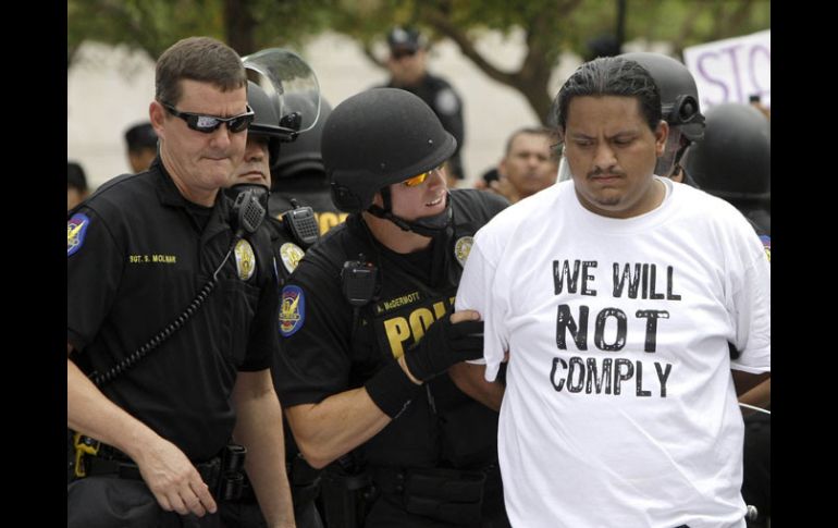 Internacional | Además de Arizona, otras cinco entidades estadounidenses han emitido leyes similares Celebra Brewer decisión de Suprema Corte de revisar la SB 1070 La gobernadora de Arizona había solicitado en agosto pasado a la Suprema Corte su intervención para que eliminara la suspensión impuesta por una juez federal Por: NTX 12 de diciembre de 2011 - 13:21 hs En esta imágen de archivo, se ve a uno de los manifestantes en contra de la ley SB 1070 ser detenido. AP / PHOENIX, ARIZONA (12/DIC/2011).- La gobernadora de Arizona, Janet Brewer, aplaudió hoy la decisión de la Suprema Corte de Justicia de Estados Unidos de revisar y dictaminar sobre la ley antiinmigrante SB 1070, promulgada en esta entidad en abril de 2010. Brewer había solicitado en agosto pasado a la Suprema Corte su intervención para que eliminara la suspensión impuesta por una juez federal a las más importantes disposiciones de la SB 1070, que ha impedido a Arizona aplicar el estatuto como fue diseñado. ''Deseo felicitar a la Suprema Corte de Justicia de Estados Unidos por su decisión de revisar y escuchar los argumentos relativos a la orden de la corte federal en contra de partes críticas de la SB 1070'', dijo Brewer en un comunicado. ''Confío en que el máximo tribunal confirmará la autoridad constitucional de Arizona y la obligación de proteger la seguridad y el bienestar de sus ciudadanos'', señaló. Además de Arizona, otras cinco entidades estadounidenses -Utah, Indiana, Georgia, Carolina del Sur y Alabama- han emitido leyes estatales migratorias que podrían verse afectadas por la futura determinación de la Suprema Corte sobre la SB 1070. Las partes clave de la SB 1070, incluyendo la autorización a las policías locales a detener a cualquier sospechoso de residir en forma ilegal en Estados Unidos, permanecen suspendidas por orden la magistrada federal Susan Bolton desde un día antes de que la ley entrara en vigor el 29 de julio de 2010. Bolton emitió la suspensión con carácter temporal, mientras analiza los méritos de la demanda interpuesta contra la ley por el Departamento de Justicia de Estados Unidos. La demanda del Departamento de Justicia, la más sólida de varias que se interpusieron contra la SB 1070, argumenta que la ley de Arizona viola la Cláusula de Supremacía de la ley federal en la materia, así como la Cláusula de Comercio al lesionar las relaciones de Estados Unidos con México. La Corte Federal de Apelaciones en San Francisco rechazó el pasado 11 de abril eliminar la suspensión impuesta por Bolton, al considerar como probable que proceda la demanda del gobierno federal y que se demuestre que el estatuto es anticonstitucional. Fue luego de dicho fallo que la gobernadora Brewer decidió acudir a la Suprema Corte de Justicia. ''Este caso no se trata sólo de Arizona. Se trata de todos los estados que lidian con los costos de la inmigración ilegal. Y se trata del principio fundamental del federalismo, en que estos estados tienen derecho a defender a su pueblo'', indico Brewer este lunes. La gobernadora argumentó también la necesidad de que los estados promulguen sus propias leyes migratorias ante los gastos que la inmigración representa para las arcas estatales. ''Más allá de las cuestiones obvias de seguridad, las cargas fiscales impuestas a Arizona por la inmigración ilegal son enormes. Nuestro estado gasta cientos de millones de dólares cada año en encarcelar a los delincuentes extranjeros'', aseguró. ''Firmé la SB 1070 con el fin de dar a nuestro estado y a las autoridades locales una herramienta más para combatir la inmigración ilegal, actuando en concierto con la ley federal y la Constitución'', señalo la gobernadora. ''Pese a ello, Estados Unidos tomó la extraordinaria decisión de iniciar una demanda para prohibir las principales disposiciones de la ley antes de que entrara en vigor'', refirió. El gobierno del presidente Barack Obama ha interpuesto demandas similares a la que radicó contra la SB 1070, contra cada una de las otras cinco leyes migratorias emitidas hasta ahora. Temas Norte América Ley antiinmigrantes Estados Unidos Recibe las últimas noticias en tu e-mail Todo lo que necesitas saber para comenzar tu día Registrarse implica aceptar los Términos y Condiciones