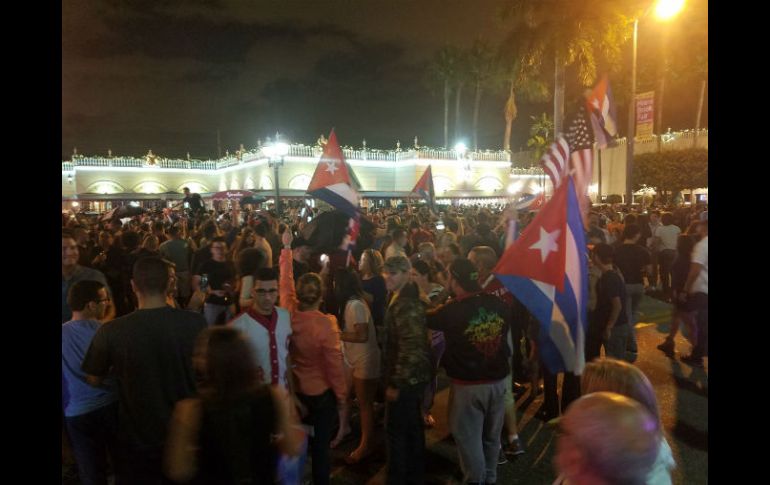 ESTADOS UNIDOS (26/NOV/2016).- Luego de que a través de la televisión cubana se diera a conocer la muerte de Fidel Castro, cientos de personas expresaron su sentir por uno de los personajes más controversiales del siglo XX.Mientras que en las redes sociales líderes mundiales mandaban mensajes de condolencias, en las calles de Miami, Florida, cientos de cubanos que residen en esta ciudad de Estados Unidos salieron a celebrar su muerte.Con la bandera de Cuba en la mano y al grito de “murió, murió, Castro murió” los manifestantes expresaban su alegría por la noticia.A través de Twitter, varios usuarios transmitían en vivo estas expresiones de júbilo. En una de estas escenas se puede ver a otro pequeño contingente gritando “libertad, libertad” mientras que los automovilistas que los encontraban a su paso los apoyaban sonando el claxon.EL INFORMADOR / PATRICIA GALLARDO