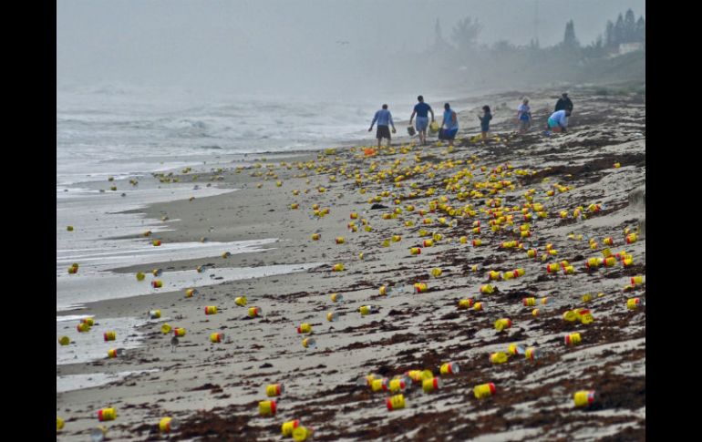Internacional | Las latas proceden de uno de los contenedores caídos al mar la semana pasada Centenares de latas de café aparecen en una playa de Florida Las latas proceden de uno de los contenedores caídos al mar desde un carguero la semana pasada Por: AP 9 de diciembre de 2015 - 08:44 hs Los guardacostas instaron a la población a que no recojan envases abiertos en el agua. AP / T. Shortt MIAMI, ESTADOS UNIDOS (09/DIC/2015).- Centenares de latas selladas y paquetes envasados al vacío de una conocida marca de café hispana han aparecido en una playa de la costa este de Florida, informó hoy la Guardia Costera estadounidense. Los paquetes y latas de café de la popular marca Bustelo, reconocibles por sus vivos colores amarillo y rojo, proceden de uno de los contenedores caídos al mar desde un carguero la semana pasada, según la Guardia Costera. El barco Columbia Elizabeth informó de la pérdida de varios contenedores mientras navegaba de Cabo Cañaveral a Palm Beach, ambas en Florida. Las autoridades confirmaron la pérdida de nueve contenedores, pero creen que la cifra total puede ser 25 por lo menos. Uno de los contenedores contenía baterías para teléfonos móviles. Los guardacostas instaron a la población a que no se acerquen a ninguna carga que aparezca en la playa ni recojan envases abiertos en el agua. En imágenes divulgadas por medios locales se ve cómo paseantes y curiosos recogen latas y paquetes en la arena de la playa de Indiatlantic y se los llevan en bolsas. Temas Norte América Estados Unidos Curiosidades y absurdos Playa Lee También Municipios de Jalisco perfectos para visitar en Día de Muertos 2025 Divisan venado en río de Vallarta donde hay cocodrilos (VIDEO) Halloween 2025: Cómo hacer imágenes en ChatGPT para imprimir NASA confirma si el cometa 31/ATLAS amenaza la vida en la Tierra o no Recibe las últimas noticias en tu e-mail Todo lo que necesitas saber para comenzar tu día Registrarse implica aceptar los Términos y Condiciones