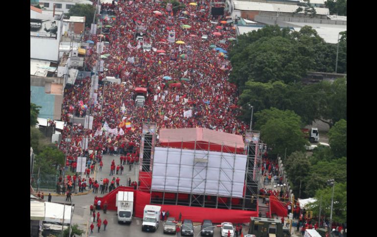 Internacional | Henrique Capriles arrancó su campaña con mítines en sitios opuestos del país Chávez y Capriles arrancan campañas electorales en Venezuela Hugo Chávez ha ocupado la silla presidencial desde 1999 y busca quedarse otros seis años Por: AP 1 de julio de 2012 - 14:26 hs En el Palacio de Miraflores,miles de simpatizantes de Hugo Chávez se concentraron en su apoyo. EFE / CARACAS, VENEZUELA (01/JUL/2012).- La campaña presidencial en Venezuela empezó oficialmente el domingo, cuando el presidente Hugo Chávez y el líder de la oposición Henrique Capriles encabezaron sendos mítines de sus seguidores, en lo que promete ser una dura batalla que culminará con la elección en octubre. Chávez llevaba su clásica boina roja mientras saludaba a la multitud de simpatizantes desde arriba de un camión en el estado central de Carabobo, saludando y enviando besos. Capriles arrancó su campaña con mítines en sitios opuestos del país: el estado de Bolívar, en el sureste del país; y en el estado occidental de Zulia. En un mensaje por Twitter, Capriles llamó la campaña como "la cuenta regresiva para abrirle la puerta al futuro a nuestra Venezuela". Chávez ha ocupado la silla presidencial desde 1999 y busca quedarse otros seis años tras la elección del 7 de octubre. El presidente de 57 años empezó su campaña luego de meses de un tratamiento contra el cáncer que ha creado incertidumbre sobre su futuro político. La semana pasada, Chávez reiteró que se ha realizado pruebas luego de su más reciente sesión de terapia en Cuba y que todo va bien. "Los resultados fueron todos positivos", dijo Chávez. En una aparente referencia a posteriores tratamientos contra el cáncer, agregó: "En este momento el horizonte al que veo, y en el que pienso, y en el que siento, no tengo previsto nada de eso. Lo que tengo previsto es batallar y triunfar". Durante el año pasado, Chávez se sometió a dos cirugías para removerle tumores de la región pélvica, la más reciente en febrero. Chávez no ha dado a conocer los detalles de su enfermedad, como el tipo de cáncer o la ubicación concreta de los tumores. Chávez ha encabezado los sondeos recientes, aunque los resultados han variado ampliamente. El gobierno dice que según los sondeos, el presidente tiene una ventaja de casi 20 puntos porcentuales, mientras que la encuestadora Consultores 21 dio a conocer un sondeo la semana pasada que muestra a ambos candidatos casi empatados. Los simpatizantes de ambos candidatos tomaron las calles el domingo, haciendo sonar las bocinas de los autos y ondeando banderas en caravanas de vehículos y motocicletas. Capriles, un gobernador estatal de 39 años, ganó en la votación primaria en febrero y es el único candidato de la oposición. Incluso antes de empezar la campaña, Capriles ha estado recorriendo el país con visitas de casa en casa, mientras que Chávez ha limitado sus apariciones públicas a actos de gobierno en Caracas. Chávez se ha comprometido a impulsar a Venezuela aún más hacia el socialismo en caso de ser reelegido. Ha utilizado las ganancias petroleras del país para financiar programas sociales para los pobres, lo que le ha ayudado a mantener su popularidad, y ha dicho que también busca ampliar su movimiento de "Revolución Bolivariana" durante los próximos años. Capriles y otros políticos de oposición sostienen que las políticas de Chávez han destrozado la economía, agravaron la delincuencia y han convertido al país en un destino poco atractivo para la inversión, además dice que apoya los programas sociales para los pobres, pero también critica las expropiaciones del gobierno de empresas privadas y dice que de ser elegido estimularía la inversión privada para generar empleos. Temas América Latina Venezuela Hugo Chávez Elecciones en Venezuela Recibe las últimas noticias en tu e-mail Todo lo que necesitas saber para comenzar tu día Registrarse implica aceptar los Términos y Condiciones