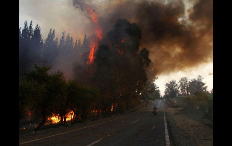SANTIAGO, CHILE (23/ENE/2017).- Unos 43 incendios forestales activos afectan actualmente al territorio chileno, además de 62 que fueron controlados, lo que es catalogado por las autoridades como los siniestros más grandes en la historia de este país andino.Según datos entregados por la Corporación Nacional Forestal (Conaf) alrededor de 100 mil hectáreas se han visto afectadas por los diversos incendios en diferentes regiones, asimismo, las autoridades levantaron una serie de alertas rojas en las zonas afectadas.El incendio que afecta a la zona de Pumanque, distante 227 kilómetros al sur de Santiago, se ha convertido en el más destructor de los últimos 50 años en el país, el fuego ha consumido al menos 38 mil 300 hectáreas.Según el fiscal de la región de O'Higgins, donde está ubicado Pumanque, Emiliano Arias, afirmó que un habitante de la zona declaró que el origen de este siniestro, particularmente, tiene relación con la producción de chispas de un tendido eléctrico."Me percaté que había mucho viento en la zona. Luego, vi el contacto de las ramas de eucalipto con las líneas del tendido eléctrico y eso produjo chispas que luego cayeron a la tierra, donde había material combustible, lo que habría originado el incendio de Pumanque", dijo el testigo.La presidenta de Chile, Michelle Bachelet, encabezó en el palacio La Moneda una reunión con los ministros de Interior y Defensa para conocer los estados de los incendios forestales.En la ocasión el titular de Interior, Mario Fernández, afirmó que "la situación es grave".Asimismo, el subsecretario del Interior, Mahmud Aleuy, enfatizó que "estamos enfrentando el mayor desastre forestal a nivel país. El año pasado tuvimos siete mil 391 hectáreas quemadas; en este minuto vamos en 178 mil", datos que comprenden entre junio de 2016 a la fecha.También informó que 56 viviendas han sido destruidas, 124 personas damnificadas, 198 evacuados y otras 86 que están albergados en recintos dispuestos para esta emergencia.El director nacional de la Oficina Nacional de Emergencia (Onemi), Ricardo Toro, detalló que para controlar los incendios existen 32 aeronaves combatiendo los siniestros en el territorio chileno, además, 21 brigadas forestales del ejército.Toro manifestó que las condiciones meteorológicas extremas han contribuido a la propagación de los incendios. Por otra parte, informó que la ayuda solicitada a otros países, entre ellos México, arribará en los próximos días.
