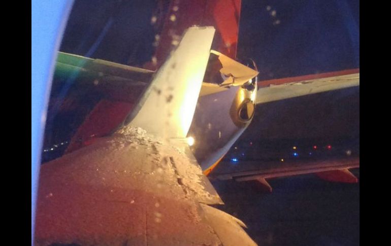 Internacional | El ala de una aeronave se enganchó con la cola de otro vuelo; no hubo heridos Chocan dos aviones en aeropuerto de Detroit El ala de una aeronave de American Airlines se enganchó con la cola de otro vuelo; no hubo heridos Por: SUN 17 de febrero de 2016 - 16:51 hs Los pasajeros estuvieron atorados por casi tres horas mientras el aeropuerto controlaba la situación. TWITTER / @detroitdreamers CIUDAD DE MEXICO (17/FEB/2016).- Dos aviones colisionaron esta mañana en el Aeropuerto Metropolitano de Detroit debido a las inclemencias de las bajas temperaturas registradas en los últimos días en la zona, informó CBS News. No se reportó ningún herido, aunque los pasajeros estuvieron atorados por casi tres horas mientras el aeropuerto controlaba la situación. El incidente ocurrió a las 6:00 horas cuando el ala de un avión de American Airlines se enganchó en la cola de un vuelo de Southwest Airlines mientras era remolcado. La policía aeroportuaria está investigando el incidente y personal de la Junta Nacional de Seguridad en el Transporte se dirige al aeropuerto para analizar la situación. Temas Norte América Accidentes en el mundo Estados Unidos Accidentes aéreos Aviones Lee También ¿Tormenta "Sonia" afectará a Jalisco en los próximos días? Ebrard buscará evitar imposición de aranceles en su visita a EU SAT: ¿Cómo saber si hay servicio tras el paro de trabajadores? SAT, abierto al diálogo después del paro de labores Recibe las últimas noticias en tu e-mail Todo lo que necesitas saber para comenzar tu día Registrarse implica aceptar los Términos y Condiciones