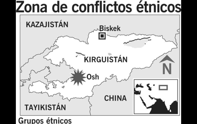 El Gobierno interino de Kirguistán, país que alberga bases militares de Estados Unidos y Rusia, declaró estado de emergencia en Osh y en varios distritos rurales después de que cientos de jóvenes se enfrentaron con armas y fierros, incendiando tiendas en la ciudad. Una portavoz del Ministerio de Salud kirguiso señaló que 646 personas resultaron heridas y que 419 de ellas se encuentran en un hospital. Los renovados disturbios en la empobrecida ex república soviética avivarán la preocupación entre potencias como Rusia, China y Estados Unidos, que utiliza sus bases aéreas en el norte del país —a unos 300 kilómetros de Osh— para abastecer a sus fuerzas en Afganistán. La intensidad del conflicto, que enfrenta a los kirguisos con la minoría uzbeka, al parecer sorprendió a las autoridades y puso en duda las posibilidades de sobrevivencia del frágil Gobierno interino liderado por Roza Otunbayeva. Aplacar la violencia será una prueba decisiva de que el Gobierno puede controlar el país, mantener las elecciones del 27 de junio sobre una nueva constitución y efectuar en octubre los comicios parlamentarios.