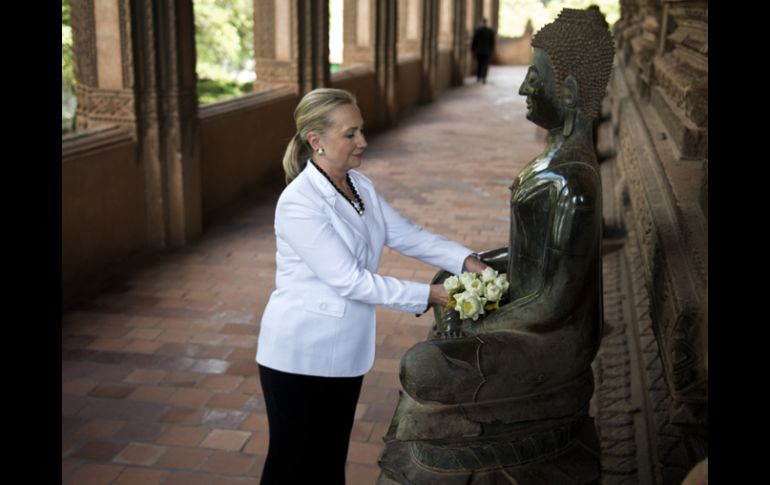 Internacional | La secretaria de Estado de EU tendrá reuniones bilaterales con los estados miembros Clinton llega a Camboya para participar en el foro de seguridad de la ASEAN El bloque de la ASEAN está formado por Birmania (Myanmar), Brunei, Camboya, Filipinas, Indonesia, Laos, Malasia, Singapur, Tailandia y Vietnam Por: EFE 11 de julio de 2012 - 07:46 hs La secretaria de Estado de EU, Hillary Clinton, deja una ofrenda a un Buda, como signo des respeto. AP / BANGOKOK, TAILANDIA (11/JUL/2012).- La secretaria de Estado de EU, Hillary Clinton, llegó hoy a Phnom Penh, procedente de Laos, para mantener reuniones bilaterales y asistir a la reunión anual del foro de seguridad de la Asociación de Naciones del Sudeste Asiático (ASEAN), informaron medios locales. La primera reunión que mantendrá está prevista para esta misma tarde con sus homólogos de la ASEAN en el centro de convenciones de la capital camboyana, donde repasarán asuntos de interés común. El bloque de la ASEAN está formado por Birmania (Myanmar), Brunei, Camboya, Filipinas, Indonesia, Laos, Malasia, Singapur, Tailandia y Vietnam. Clinton también tiene previsto entrevistarse con el primer ministro de Camboya, Hun Sen, en ese mismo centro de convenciones que acogerá la reunión del foro de seguridad de la ASEAN. Este foro, creado por la ASEAN en 1994 como canal para solucionar las disputas regionales mediante el diálogo, integra a los diez países anteriores y a Australia, Bangladesh, Canadá, China, Corea del Sur, Corea del Norte, EU, la India, Japón, Mongolia, Nueva Zelanda, Pakistán, Papúa Nueva Guinea, Rusia, Sri Lanka, Timor Oriental y la Unión Europea. El viernes por la tarde, Clinton participará en un foro empresarial ASEAN-EU organizado en Siem Reap, ciudad camboyana a más de 300 kilómetros al norte de Phnom Penh. Tras Camboya, la secretaria de Estado viajará a Egipto y luego a Israel, donde concluirá una gira internacional que empezó en Francia y prosiguió por Japón, Mongolia, Vietnam y Laos. Temas Norte América Estados Unidos Hillary Clinton Recibe las últimas noticias en tu e-mail Todo lo que necesitas saber para comenzar tu día Registrarse implica aceptar los Términos y Condiciones