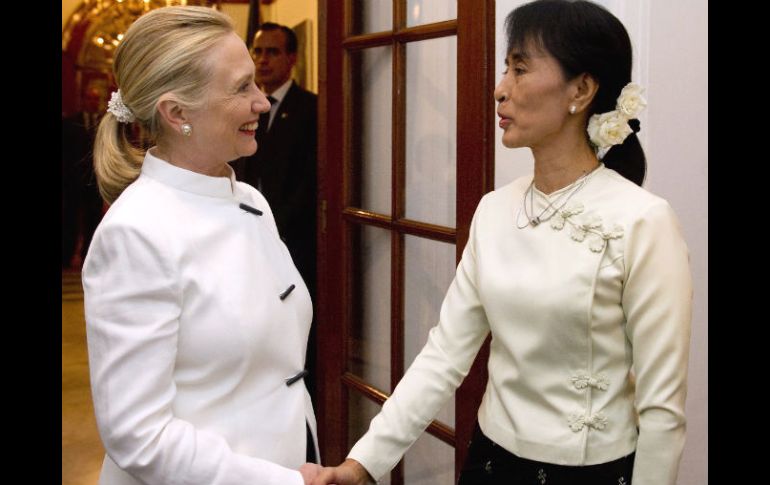 Internacional | El objetivo del viaje es alentar el proceso de reformas en el país asiático Clinton y Suu Kyi se reencuentran para hablar de política birmana El objetivo del viaje de la secretaria de Estado es alentar el proceso de reformas en el país asiático Por: EFE 1 de diciembre de 2011 - 21:19 hs Hillary Clinton y Aung San Suu Kyi se saludan en una cena privada ofrecida en la residencia del jefe diplomático estadounidense. AP / RANGÚN, BIRMANIA (01/DIC/2011).- La secretaria de Estado de Estados Unidos, Hillary Clinton, se reencontró hoy en Rangún con la nobel de la paz y líder de movimiento democrático birmano, Aung San Suu Kyi, para mantener conversaciones formales sobre sus planes políticos. Clinton, quien desde el pasado miércoles realiza la visita de mayor nivel hecha por un representante de Estados Unidos desde 1955, fue recibida por Suu Kyi en su casa de estilo colonial británico situada a orillas del Lago Inya. Suu Kyi ha pasado la mayor parte de los 15 años que ha estado bajo arresto domiciliario en esta vivienda que heredó de su madre, quien fuera embajadora de Birmania en la India y que la recibió como regalo por ser la viuda del héroe de la independencia, el general Aung San, asesinado en 1947. La activista condujo a la jefa de la diplomacia estadounidense por las estancias de la primera planta de la casa y los jardines del solar que ocupa, rodeado este en gran parte por un alto muro que días pasados fue pintado al igual que la verja por encima de la cual la activista se asomó en noviembre de 2010, cuando fue liberada. Clinton se reencontró con Suu Kyi al día siguiente de compartir una cena privada en la residencia oficial del jefe de la misión diplomática estadounidense, en Rangún, ubicada a escasa distancia de la avenida Universidad, donde está situada la vivienda de la nobel de la paz. Suu Kyi tiene previsto presentarse como candidata a uno de los 46 escaños vacantes el Parlamento en las elecciones que se celebrarán el próximo año, al frente de la Liga Nacional por la Democracia (LND), que aguarda el visto bueno de las autoridades a su solicitud para que sea legalizada de nuevo como formación política. Además, la secretaria de Estado mantendrá antes de poner fin a su visita oficial a Birmania, un encuentro a puerta cerrada con destacados miembros de la LND, representantes de las mayores etnias birmanas de distintos colectivos sociales, incluido el de la mujer, según indicaron fuentes diplomáticas estadounidenses. Estados Unidos ha ofrecido ayuda al Gobierno birmano para proseguir con el proceso de reformas políticas que inició este año tras la disolución del régimen militar que gobernó el país durante cinco décadas Clinton matizó ayer en rueda de prensa tras reunirse con el presidente Thein Sein, que aunque el Gobierno birmano se ha comprometido a continuar con las reformas, Washington mantendrá las sanciones impuestas al país hace ya casi dos décadas en respuesta a las violaciones sistemáticas de los derechos humanos, hasta que perciban un mayor progreso, sobre todo la liberación de los presos políticos. El Gobierno de Thein Sein, un exgeneral que desempeñó el cargo de primer ministro con la junta militar, ha excarcelado hasta el momento a unos 300 presos políticos pero cerca de 1.800 continúan en prisión, según la oposición. El objetivo del viaje de la secretaria de Estado es alentar el proceso de reformas acometido por Thein Sein, quien ya calificó de "histórica" la visita y subrayó que esta "abre un nuevo capítulo en las relaciones" con Estados Unidos. Temas Asia Estados Unidos Hillary Clinton Birmania Recibe las últimas noticias en tu e-mail Todo lo que necesitas saber para comenzar tu día Registrarse implica aceptar los Términos y Condiciones