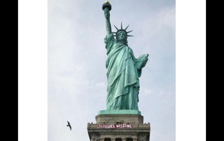 NUEVA YORK, ESTADOS UNIDOS (22/FEB/2017).- El Servicio de Parques Nacionales de Estados Unidos trataba de determinar quién colocó el martes una enorme pancarta con el mensaje "Bienvenidos refugiados".El cartel, de un metro por seis, se colgó por la tarde desde el mirador de observación público en la parte superior del pedestal de la estatua, explicó Jerry Willis, portavoz del Servicio de Parques. La pancarta se retiró más de una hora más tarde.Las regulaciones prohíben fijar nada a la estatua, indicó Willis.El cartel se colgó el mismo día en el que el Departamento de Seguridad Nacional anunció una ampliación de sus medidas de control migratorio.'¡No es mi presidente', gritan miles en Nueva York contra TrumpAl grito de "¡No es mi presidente!" y en clima de fiesta, unas tres mil personas protestaron en Nueva York el pasado lunes 20 de febrero, día feriado de sol invernal, en el que Estados Unidos celebró el Día de los Presidentes.Manifestantes de todas las edades y razas se concentraron en Columbus Circle, frente al Trump International Hotel y en el lado oeste de Central Park, para expresar su insatisfacción con el nuevo gobierno, en la última de varias protestas que han sacudido el país desde que Trump llegó a la Casa Blanca hace un mes.Apenas comenzada la protesta en el "Día de los Presidentes", que Estados Unidos celebra cada año, ya había unos tres mil manifestantes, según un conteo no oficial de la policía, que cerró varias cuadras de la calle Central Park West."Trump está dañando el país. Si no hacemos algo, perderemos a Estados Unidos antes de darnos cuenta. Por eso en los últimos cuatro días he ido a cuatro protestas. ¿Qué más puedo hacer? Es la única manera de tratar de llegar al Congreso", dijo una de las manifestantes, Rima Strauss, una psicoanalista jubilada de unos 70 años que vive entre Nueva York y Washington DC."Trump no nos escucha a nosotros. Pero si la gente común marcha en las calles, quizás tengamos una suerte de revolución", señaló Strauss, que también participó en la gran protesta de la Marcha de las Mujeres el 21 de enero, al día siguiente de la investidura."Somos musulmanes, vinimos a predicar el mensaje de paz y amor. Obedezco al presidente Trump pero no tengo por qué estar de acuerdo con sus políticas", explicó otro manifestante, Qamar Khan, un estudiante de medicina de 26 años que llegó a Estados Unidos desde Pakistán a los siete y hoy es estadounidense.En una esquina, una docena de manifestantes con banderas estadounidenses y carteles que leían "Hispanos por Trump" y "Judíos por Trump" se enfrentaron a la multitud con cánticos y gritos."¡No a Trump! ¡No al KKK (Ku Klux Klan)! ¡No a una América fascista!", respondieron los anti-Trump mientras la orquesta tocaba "Stand up for your rights" (Defiende tus derechos), el himno por los derechos humanos de Bob Marley y Peter Tosh.