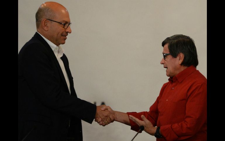 CARACAS, VENEZUELA (10/OCT/2016).- El gobierno de Colombia y el grupo guerrillero Ejército de Liberación Nacional anunciaron el lunes que a fin de mes comenzará la fase pública de las negociaciones sobre un acuerdo de paz para dar fin a más de medio siglo de conflicto armado.El anuncio fue hecho desde la sede de la cancillería venezolana en Caracas por Mauricio Rodríguez, jefe de la delegación del gobierno colombiano, y por el jefe del grupo rebelde, conocido por el alias de "Pablo Beltrán", tras más de más de dos años de conversaciones preliminares."Las delegaciones del gobierno nacional y del ELN hemos acordado, primero, instalar el día 27 de octubre en Quito, Ecuador, la mesa pública de conversaciones", según el documento leído por Rodríguez y el líder guerrillero.El ELN, que nació en 1965 como un proyecto político "antiimperialista" y "antioligarquías" inspirado en la revolución cubana, tiene en sus filas a unos mil 500 combatientes, según cifras oficiales.
