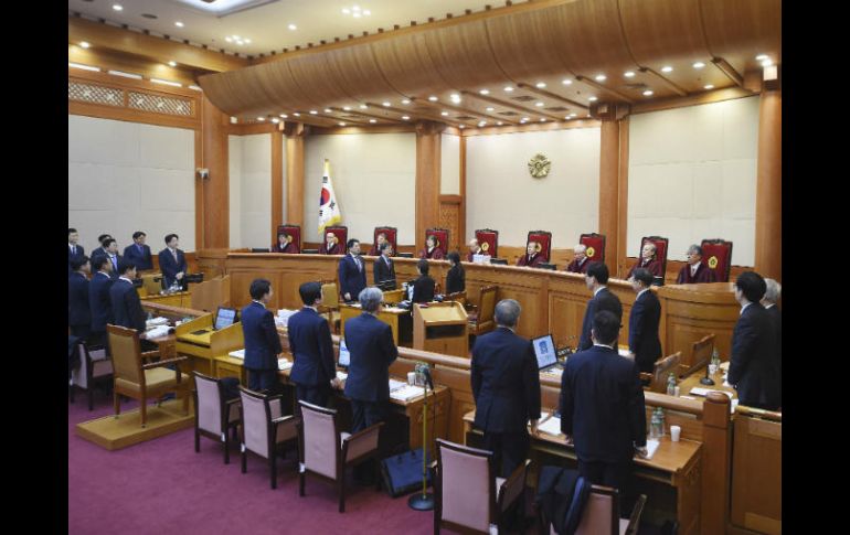 SEUL, COREA DEL SUR (04/ENE/2017).- La Corte Constitucional de Corea del Sur comenzó el jueves a escuchar los argumentos orales en el juicio político contra la presidenta Park Geun-hye, cuya destitución aprobaron los legisladores debido a un escándalo de corrupción que suscitó protestas de millones de personas en los últimos meses.Los abogados de Park, y los legisladores, estos últimos en el papel de fiscales en el juicio, intercambiaron el jueves argumentos incisivos sobre la validez de las acusaciones de que ella se coludió con una amiga íntima para extorsionar a compañías y de que la amiga se entrometió ilegalmente en asuntos del gobierno.El legislador Kweon Seong Dong, el fiscal en jefe en el juicio, dijo que Park traicionó la confianza que depositó en ella el pueblo al infringir "amplia y gravemente" la constitución y el derecho penal. El abogado de Park, Lee Joong-hwan, dijo que las acusaciones manifestadas en la iniciativa del juicio político "carecen de pruebas y de sentido jurídico" porque se basaron en afirmaciones y versiones de prensa, no en condenas penales.La audiencia se efectuó sin Park, quien se negó a testificar por segunda vez. La corte de nueve magistrados carece de facultades para obligar a la mandataria a presentarse.Los abogados de Park quizá decidieron que ella no testifique porque su argumento principal es que las acusaciones contra la presidenta no están totalmente demostradas, dijo Han Sang-hie, profesor de leyes en la Universidad Konkuk en Seúl.Park rechazó las solicitudes de los fiscales del estado para interrogarla y todavía no la ha interrogado el equipo especial de la fiscalía que asumió la investigación.El tribunal tiene seis meses para decidir si Park debe dejar definitivamente la presidencia o si debe ser reinstalada en el cargo.
