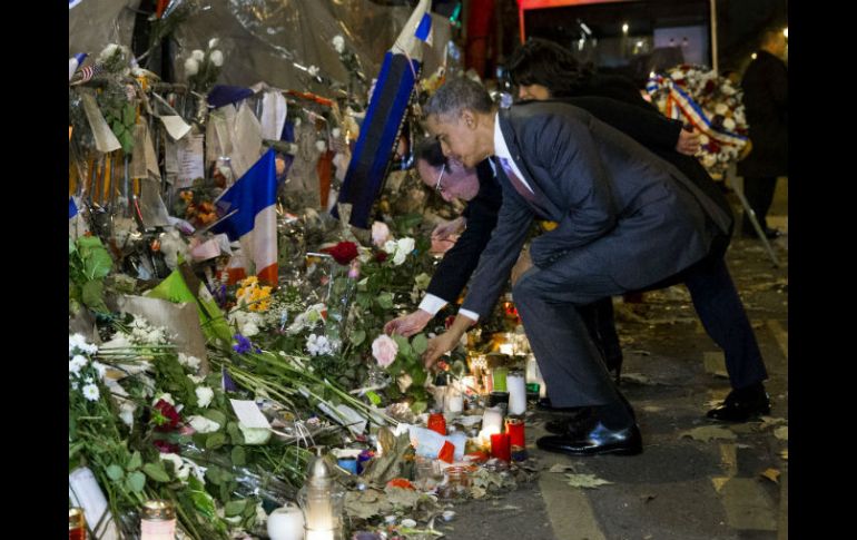 Internacional | Colocó el presente frente al Bataclan Con rosa blanca, Obama homenajea a víctimas de atentados en París Por razones de seguridad, la ceremonia para honrar a las personas que murieron en ese sitio ocurrió en la madrugada, de manera muy hermética Por: EFE 30 de noviembre de 2015 - 01:28 hs Ambos mandatarios colocaron flores en el recinto y luego guardaron silencio unos momentos. AP / E. Vucci PARÍS, FRANCIA (30/NOV/2015).- El presidente estadunidense Barack Obama realizó hoy un sorpresivo homenaje a las víctimas de los atentados del pasado viernes 13, con la colocación de una rosa blanca ante la sala de espectáculos Bataclan. Por razones de seguridad el homenaje a las 90 víctimas que murieron en ese lugar del norte de la ciudad, ocurrió en la madrugada parisina, sin convocatoria a la prensa ni mención en la agenda del mandatario o del gobierno francés. El presidente de Francia, Francois Hollande, y la alcaldesa de París, Anne Hidalgo, acompañaron a Obama, quien llegó a esta capital la medianoche local para acudir a la cumbre del clima que comienza este lunes. Imágenes difundidas esta mañana por la presidencia francesa muestran al mandatario visitante cuando coloca una rosa blanca en la entrada de la sala de espectáculos y guardó silencio. También cuando permanece con los ojos cerrados durante unos instantes. Al final toma por el hombro a Hollande y a la alcaldesa parisina. Obama participará este lunes en la inauguración de la cumbre de Naciones Unidas sobre cambio climático, COP 21, que se celebra en las afueras de París, en una jornada en la que asisten 150 jefes de Estado y de gobierno. Temas Europa Paris Terrorismo Barack Obama Homenaje François Hollande Recibe las últimas noticias en tu e-mail Todo lo que necesitas saber para comenzar tu día Registrarse implica aceptar los Términos y Condiciones