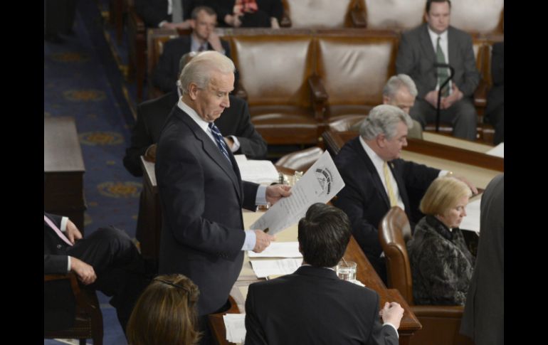 Internacional | En una sesión bicameral conjunta fueron declarados ganadores Congreso de EU certifica triunfo electoral de Obama-Biden En una sesión bicameral conjunta fueron declarados ganadores con 332 votos del colegio electoral Por: NTX 4 de enero de 2013 - 16:06 hs La sesión para tabular los votos fue presidida por el propio Joe Biden, en su calidad de presidente del Senado. EFE / WASHINGTON, ESTADOS UNIDOS (04/ENE/2013).- El Congreso de Estado Unidos validó hoy de manera oficial el triunfo del mandatario Barack Obama y el vicepresidente Joe Biden en las elecciones del 6 de noviembre pasado. En una sesión bicameral conjunta, Obama y Biden fueron declarados ganadores con 332 votos del colegio electoral, en tanto que el candidato republicano Mitt Romney y su compañero de fórmula, Paul Ryan, obtuvieron 206 sufragios. La sesión para tabular los votos aportados por cada uno de los 50 estados y el distrito de Columbia a este cuerpo colegiado fue presidida por el propio Biden, en su calidad de presidente del Senado. Temas Norte América Estados Unidos Congreso Demócratas Recibe las últimas noticias en tu e-mail Todo lo que necesitas saber para comenzar tu día Registrarse implica aceptar los Términos y Condiciones