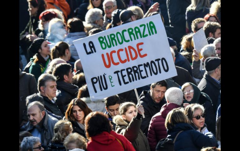 ROMA, ITALIA (25/ENE/2017).- Cientos de habitantes de las poblaciones afectadas por los terremotos en el centro Italia se manifestaron este miércoles en Roma para protestar contra la burocracia, en su opinión una de las principales causas del retraso en la reconstrucción.Los manifestantes desfilaron desde la céntrica plaza de Santos Apóstoles hasta la de Montecitorio, donde se encuentra la Cámara de los Diputados, y todos ellos llevaban puesta una banda con los colores de la bandera italiana, símbolo que emplean los alcaldes.Lo hicieron para apoyar a sus regidores, comprometidos en afrontar la situación de emergencia que viven sus municipios, ubicados en las regiones de Umbria, Las Marcas o Lacio y devastados por seísmos como el del 24 de agosto pasado, que se saldó con casi 300 víctimas mortales.Los asistentes protestaron contra "los continuos e inoportunos protocolos burocráticos", que, en opinión de los organizadores de la marcha, "han impedido cualquier renacimiento" de las zonas afectadas, reducidas a escombros.Los participantes llevaban pancartas en las que lamentaban la lentitud de las ayudas y subrayaban su voluntad de permanecer en sus localidades de origen, muchas de ellas destrozadas, como son los casos de Amatrice, Accumoli o Arquata del Tronto.A la manifestación acudieron algunos representantes políticos como el diputado del Movimiento Cinco Estrellas Alessandro di Battista o el líder ultraderechista, Matteo Salvini.
