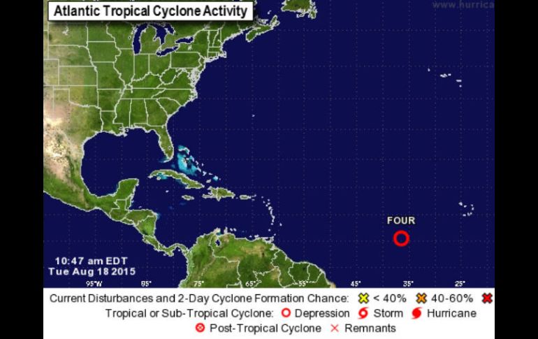 Internacional | Es la cuarta de la temporada y amenaza con convertirse en el primer huracán Depresión tropical se forma en el Atlántico y va hacia el Caribe Es la cuarta de la temporada y amenaza con convertirse en el primer huracán Por: EFE 18 de agosto de 2015 - 09:58 hs Los meteorólogos prevén que mantenga esta dirección durante las próximas horas. ESPECIAL / nhc.noaa.gov MIAMI, ESTADOS UNIDOS (18/AGO/2015).- Una nueva depresión tropical, la cuarta en lo que va de temporada en la cuenca atlántica, se formó hoy y amenaza con convertirse en el primer huracán del año este próximo fin de semana, informó el Centro Nacional de Huracanes (NHC, en inglés) de EU. El CNH detalló en su boletín de las 15:00 GMT de hoy que la depresión se encuentra a 10.6 grados de latitud norte y 36.5 grados de longitud oeste, es decir, a unos dos mil 680 kilómetros al este de las islas de Barlovento. Presenta vientos máximos sostenidos de 55 kilómetros por hora y se desplaza hacia el oeste con una velocidad de traslación de 20 kilómetros por hora. Los meteorólogos prevén que mantenga esta dirección durante las próximas horas y que esta noche o el miércoles gire hacia el oeste-noroeste. El NHC señala que esta depresión tropical se podría convertir hoy en la cuarta tormenta tropical de la temporada, tras Ana, Bill (que provocó una decena de muertes) y Claudette. Estiman además que este el próximo viernes el fenómeno meteorológico podría ser el primer huracán de la temporada en su rumbo hacia las islas del Caribe. Expertos de Ciencias Atmosféricas de la Universidad Estatal de Colorado (EU) pronosticaron el pasado 6 de agosto que la actual temporada ciclónica estará "bastante por debajo de la media", con cinco tormentas tropicales y dos huracanes. La media de ciclones en la temporada en la cuenca atlántica, que se inició el 1 de junio y terminará el 30 de noviembre, es de 10.5 tormentas tropicales y 5.5 huracanes. Esta baja actividad, explicaron, se debe al desarrollo del fenómeno de El Niño en el Pacífico, que inhibe la formación de tormentas en el Atlántico. Temas Norte América Fenómenos Naturales Tormenta tropical Lee También Venezuela Cruz Azul vs. América: La Máquina remonta y se queda con el clásico joven Cruz Azul vs América • Momentos Destacados • Jornada 13 • Apertura 2025 México actualiza cifras tras intensas lluvias: 76 muertos y 39 desaparecidos en 5 estados Recibe las últimas noticias en tu e-mail Todo lo que necesitas saber para comenzar tu día Registrarse implica aceptar los Términos y Condiciones