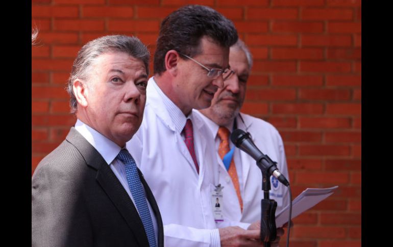 BOGOTÁ, COLOMBIA (21/NOV/2016).- Los nuevos exámenes médicos a los que se sometió el presidente de Colombia, Juan Manuel Santos, descartan la presencia de cáncer de próstata pero el mandatario deberá someterse a una única sesión de radioterapia, informaron este lunes sus doctores.Tras realizarse pruebas complementarias en el hospital Johns Hopkins Medicine de Baltimore y en la fundación Santa Fe de Bogotá a recomendación de sus médicos, Santos descartó el retorno de un tumor cancerígeno."Me recomiendan un tratamiento con medicamentos y una única, única, sesión de radioterapia que busca prevenir los efectos secundarios de la medicina", dijo el presidente en una comparecencia desde Bogotá junto al director médico de la clínica, Adolfo Llinás."No tengo ni metástasis ni tengo ningún tumor. Lo que los médicos encontraron es un rezago mínimo de lo que tuve en el pasado", agregó.En octubre de 2012, Santos fue operado de cáncer de próstata y el resultado fue exitoso.Después de detectar un aumento inesperado del antígeno prostático en el cuerpo del presidente, sus médicos le recomendaron el pasado martes realizarse una prueba en la institución estadounidense porque dispone de una tecnología todavía inexistente en Colombia.