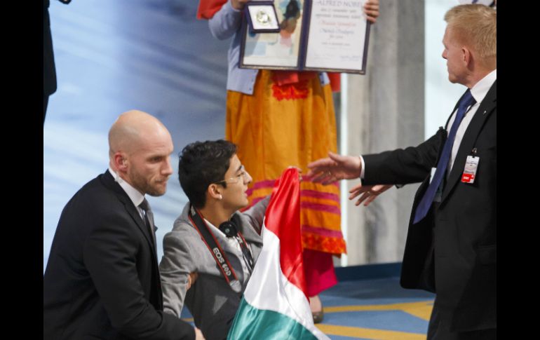 Internacional | El individuo con la bandera mexicana fue llevado fuera de la alcaldía de Oslo Detenido, hombre que interrumpió ceremonia del Nobel de la Paz El individuo con la bandera mexicana fue llevado fuera de la alcaldía de Oslo Por: AFP 10 de diciembre de 2014 - 08:01 hs OSLO, NORUEGA (10/DIC/2014).- Un hombre que perturbó la ceremonia de entrega del Premio Nobel de la Paz en Oslo agitando ante los laureados una bandera mexicana fue detenido, anunció la policía noruega. Este hombre vestido con una chaqueta gris y unos pantalones negros, con una cámara fotográfica colgada al cuello, se plantó ante los laureados y empezó a ondear la bandera, mientras la paquistaní Malala Yousafzai y el indio Kailash Satyarthi mostraban sus diplomas, entre los aplausos del público. Malala ya ha recibido varias distinciones, ha sido invitada a la Casa Blanca, al palacio de Buckingham o en el estrado de la ONU, ha escrito su autobiografía y ha recibido múltiples recompensas. Fue llevado por las fuerzas del orden fuera de la alcaldía de Oslo, donde se celebraba la ceremonia. "Hemos tenido un incidente no deseado en relación con la entrega del premio, protagonizado por una persona que está bajo nuestra custodia. La situación está controlada y la policía está comprobando ahora las circunstancias relativas al caso", consta en un breve comunicado de las autoridades noruegas. Las motivaciones y la identidad del detenido se desconocían por el momento. Con información de AFP y EFE. Temas Europa Premios Premios Nobel Mexicanos Noruega Premio Nobel de la Paz Lee También ¿Trump ganaría el Nobel de la Paz? Veteranos del Comité de premiación responden Isaac Del Toro gana... ahora en el Gran Piemonte 2025 ¿Cuánto cuestan y dónde comprar los libros del Nobel de Literatura 2025? Otorgan Premio Nobel de Literatura al húngaro László Krasznahorkai Recibe las últimas noticias en tu e-mail Todo lo que necesitas saber para comenzar tu día Registrarse implica aceptar los Términos y Condiciones