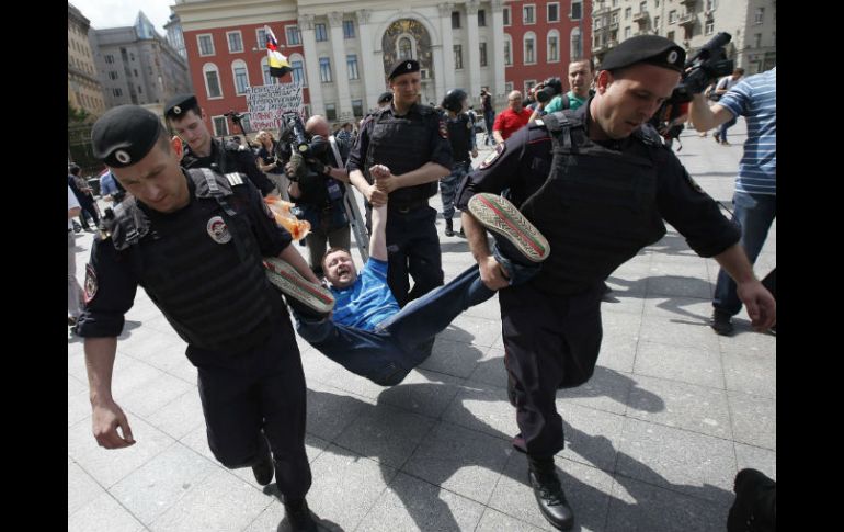 Internacional | El hombre es atacado por activistas radicales al intentar celebrar una marcha Detienen a líder de movimiento homosexual en Rusia El hombre es atacado por activistas radicales al intentar celebrar una marcha sin autorización Por: EFE 30 de mayo de 2015 - 20:18 hs MOSCÚ, RUSIA (30/MAY/2015).- Uno de los líderes del movimiento homosexual ruso, Nikolái Alekséyev, fue detenido al intentar celebrar una marcha de orgullo gay sin autorización del Ayuntamiento de Moscú. Alekséyev, quien confirmó su detención en Instagram, fue atacado por unos activistas radicales ortodoxos cuando se personó en la céntrica calle Tverskaya para celebrar el acto, según informan medios locales. Otros defensores del movimiento homosexual acudieron en ayuda de su líder, tras lo que se desató una pelea que obligó a las fuerzas del orden a bloquear el tráfico en esa arteria que conduce a las inmediaciones del Kremlin. También fueron detenidos otros conocidos activistas homosexuales como Dmitri Enteo, que fue trasladado a comisaría en un furgón policial, y varios ultranacionalistas que les agredieron. Recientemente, Alekséyev reconoció que las autoridades moscovitas le habían denegado por décimo año consecutivo la autorización para celebrar la marcha de orgullo gay. Con todo, dijo que recurriría dicha decisión ante los tribunales, aduciendo que supone una violación de los derechos humanos, y recalcó que "la marcha se celebrará en cualquier caso". Desde 2006, Alekséyev ve rechazada su solicitud para celebrar una marcha del orgullo gay, pese a lo cual algunos activistas salen a la calle y se enfrentan a los ultranacionalistas y radicales ortodoxos, lo que suele desembocar en choques violentos y detenciones. Rusia prohibió en 2013 la propaganda de la homosexualidad entre los menores de edad, una ley que las minorías sexuales consideran una flagrante violación de su libertad de expresión. Según una reciente encuesta, un 37% de los rusos cree que la homosexualidad es una enfermedad que se debe curar. El artículo 121 del Código Penal de Rusia, que sancionaba con penas de cárcel las prácticas homosexuales, no fue abolido hasta 1993, año en que también se dejó de considerar la homosexualidad como una enfermedad mental. Temas Europa Rusia Manifestaciones en el mundo Homosexualidad Recibe las últimas noticias en tu e-mail Todo lo que necesitas saber para comenzar tu día Registrarse implica aceptar los Términos y Condiciones