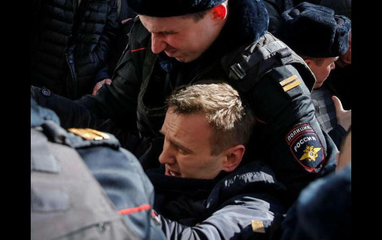 MOSCÚ, RUSIA (26/MAR/2017).- El líder opositor y candidato a la presidencia de Rusia, Alexéi Navalni, fue detenido hoy en el centro de Moscú, donde se celebra un mitin no autorizado en el marco de una jornada nacional de protesta contra la corrupción, informó su página web, que emite imágenes en directo del lugar de la manifestación.Pese a que las autoridades moscovitas habían advertido de que el mitin era ilegal, varios miles de personas se han congregado en la céntrica plaza Puskhin y la calle Tverskaya (antigua Gorki), en medio de un gran despliegue policial."Rusia será libre", "¡Libertad, Libertad", coreaban los manifestante reunidos en la plaza Pushkin.Los organizadores de la protesta recomiendan a los participantes en la manifestación "pasear" por ambas aceras de la calle Tvérskaya para evitar ser detenidos.La jornada nacional de protesta contra la corrupción fue convocada por Navalni bajo el lema "Dimón (diminutivo despectivo de Dmitri) las pagará", que alude al primer ministro ruso, Dmitri Medvédev, a quien el líder opositor acusa de ser el hombre más corrupto de Rusia.El líder opositor hizo esta denuncia a comienzos de mes en un vídeo publicado en Youtube, resultado de una investigación de varios meses, que ya ha sido visto más de diez millones de veces.En el vídeo, de 59 minutos, titulado "Él para ustedes no es Dimón", se afirma que el primer ministro ha acumulado un imperio con activos, tanto dentro como fuera del país, mediante fundaciones benéficas dirigidas por familiares y personas de su más absoluta confianza."Basándonos en la documentación publicada afirmamos que a las fundaciones de Medvédev han sido transferidos como mínimo 70 mil millones de rublos (cerca de mil 200 millones de dólares) en dinero y propiedades", mantuvo Navalni, que dirige la Fundación de Lucha Contra la Corrupción.Los mítines contra la corrupción ya se han celebrado en ciudades como Vladivostok, Krasnoyarsk y Tomsk, donde tampoco contaban con permiso de la autoridades.Según medios locales, en Vladivostok la policía detuvo a una treintena de personas.En San Petersburgo, la segunda ciudad del país, varios miles de manifestantes se congregaron en el Campo de Marte."Las manifestaciones transcurren de manera pacífica y no se han producido detenciones masivas", informó la página web de Navalni, que destacó que la jornada de protesta de hoy es "la victoria sobre el miedo".