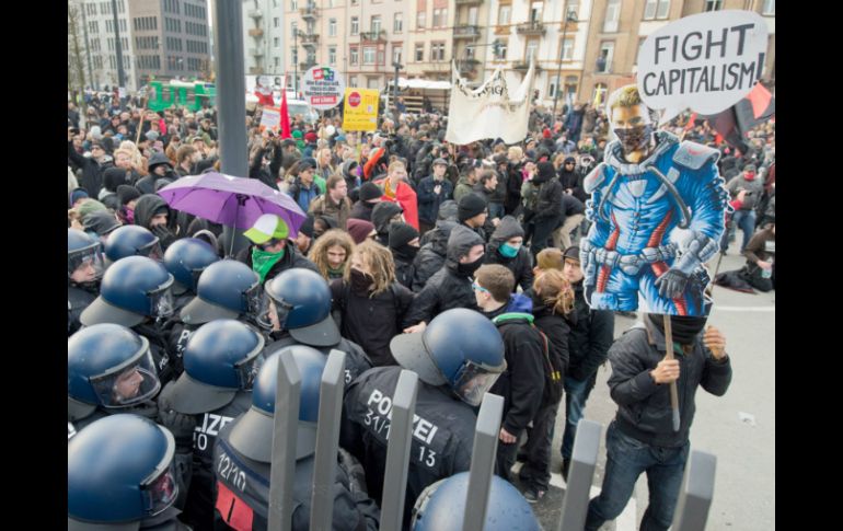 Internacional | Protestan contra la inversión de mil 200 millones de euros en construcción de edificio Dos mil anticapitalistas se manifiestan en el BCE, Alemania Protestan contra la inversión de mil 200 millones de euros para la construcción del nuevo edificio Por: EFE 22 de noviembre de 2014 - 12:11 hs FRÁNCFORT, ALEMANIA (22/NOV/2014).- Activistas del grupo anticapitalista Blockupy entraron en el recinto de la nueva sede del Banco Central Europeo (BCE) y arrojaron huevos, bolsas de pintura y piedras, a lo que Policía respondió con gas pimienta sin detener a ninguno. Unos dos mil activistas del movimiento Blockupy, miembros del partido de izquierdas 'Die Linke', así como otros manifestantes, iniciaron en la iglesia Paulskirche, símbolo de la democracia en Fráncfort, una marcha por el centro de la ciudad hasta llegar al recinto de la nueva sede del BCE. Una vez ahí, unos 80 activistas y manifestantes treparon por el vallado, irrumpieron en el recinto del BCE y arrojaron huevos, bolsas de pintura y piedras a la nueva sede. Posteriormente también atacaron a algunos los policías con patadas y puñetazos, sin que se produjeran heridos. La Policía respondió con gas pimienta y desalojó a los manifestantes sin incidentes y sin detener a ninguno. El movimiento Blockupy dijo que algunos de los manifestantes fueron afectados por el gas pimienta. Tras unos minutos, los activistas abandonaron el recinto del BCE, en la parte este de Fráncfort. Blockupy anunció una nueva manifestación para el 18 marzo del próximo año, cuando se produzca la inauguración oficial de la nueva sede del BCE. Los manifestantes gritaron durante la marcha que el coste de la nueva sede del BCE, mil 200 millones de euros, ha sido malgastar el dinero ''por la mierda de trabajo que hacen'' en la entidad monetaria. El lema de la manifestación fue ''La mudanza al nuevo BCE. ¡Ayudamos a empaquetar!''. Temas Europa Alemania Manifestaciones en el mundo Banco Centro Europeo (BCE) Recibe las últimas noticias en tu e-mail Todo lo que necesitas saber para comenzar tu día Registrarse implica aceptar los Términos y Condiciones