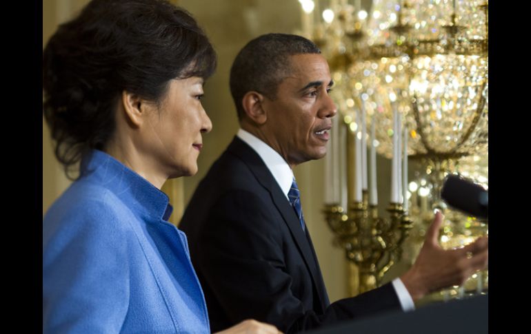 Internacional | El presidente refrenda su apoyo a Corea del Sur ante una posible agresión EU, preparado para defenderse de amenazas de Norcorea: Obama Obama ofrece una conferencia de prensa conjunta con su homóloga de Corea del Sur, Park Geun-hye, tras reunirse con ella en la Casa Blanca Por: EFE 7 de mayo de 2013 - 13:48 hs El presidente estadounidense, Barack Obama (d), habla junto a homóloga surcoreana, Park Geun-hye (i). EFE / WASHINGTON, ESTADOS UNIDOS (07/MAY/2013).- El presidente de EU, Barack Obama, afirmó que su país está "totalmente preparado" para defenderse y apoyar a aliados como Corea del Sur ante las amenazas de Corea del Norte. "Estados Unidos y Corea del Sur están más unidos que nunca", dijo Obama al considerar que los intentos de Corea del Norte por debilitar esa alianza "han fracasado". Obama habló así en una conferencia de prensa conjunta con su homóloga de Corea del Sur, Park Geun-hye, tras reunirse con ella en la Casa Blanca. Según el mandatario estadounidense, que pidió a Pyongyang que siga el ejemplo de países que han emprendido reformas democráticas como Birmania, Corea del Norte "está cada vez más aislada". El enfoque de EU sobre Corea del Norte es compartido con Seúl, anotó Obama, quien agregó que ambos países están "abiertos" al diálogo si Corea del Norte elige "un camino pacífico hacia la desnuclearización". No obstante, "responderemos a una agresión y no recompensaremos las acciones provocativas", aclaró Obama. Por su parte, Park subrayó que Corea del Norte "no será capaz de sobrevivir" si persigue tener armas nucleares "a expensas de la felicidad de su pueblo". La reunión que tuvieron a puerta cerrada en la Casa Blanca Park y Obama antes de la conferencia de prensa estuvo centrada en las recientes amenazas nucleares de Corea del Norte contra Corea del Sur y EU, entre otros asuntos. Ambos mandatarios emitieron una declaración conjunta para fortalecer la relación entre los dos países en coincidencia con el sexagésimo aniversario de la alianza bilateral. "Estados Unidos sigue firmemente comprometido con la defensa de la República de Corea, en particular mediante la disuasión y el abanico completo de capacidades militares estadounidenses, tanto convencionales como nucleares", destaca esa declaración. "Estamos resueltos a seguir defendiendo a nuestros ciudadanos contra las provocaciones de Corea del Norte", aseguran los dos Gobiernos en la declaración, divulgada por la Casa Blanca. Además, "la libertad, amistad y prosperidad compartida que disfrutamos hoy descansan sobre nuestros valores compartidos de libertad, democracia y economía de mercado", agregan. Temas Norte América Estados Unidos Barack Obama Corea del Norte Corea del Sur Lee También Verstappen se lleva la pole en Austin y presiona a los McLaren Cruz Azul vs América • Momentos Destacados • Jornada 13 • Apertura 2025 Sheinbaum descarta riesgo por crecimiento del río Pánuco en Tamaulipas México vs Corea del Sur: EN VIVO, dónde ver el partido por el Mundial Sub-17 femenil Recibe las últimas noticias en tu e-mail Todo lo que necesitas saber para comenzar tu día Registrarse implica aceptar los Términos y Condiciones