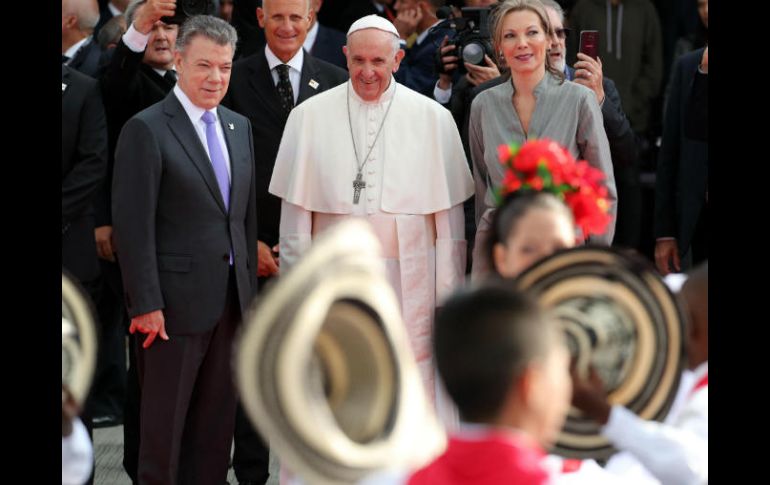 BOGOTÁ, COLOMBIA (06/SEP/2017).- El Papa Francisco envió su primer mensaje a los colombianos, sobre todo a los jóvenes, que lo recibieron en la Nunciatura: "no pierdan la alegría, no pierdan la esperanza".El Pontífice llegó el miércoles a Bogotá para una visita de cinco días, en un viaje pastoral que espera sirva para reconciliar a un país marcado por más de cinco décadas de conflicto armado.Tras recorrer los 15 kilómetros que separan el aeropuerto internacional El Dorado de la Nunciatura, donde pasará la noche, Francisco dio unas primeras palabras al pueblo colombiano."No se dejen vencer, no se dejen engañar, no pierdan la alegría, no pierdan la esperanza", dijo Francisco, el primer papa latinoamericano. Antes de entrar a descansar, el pontífice observó bailables y cantos que le dedicaron.