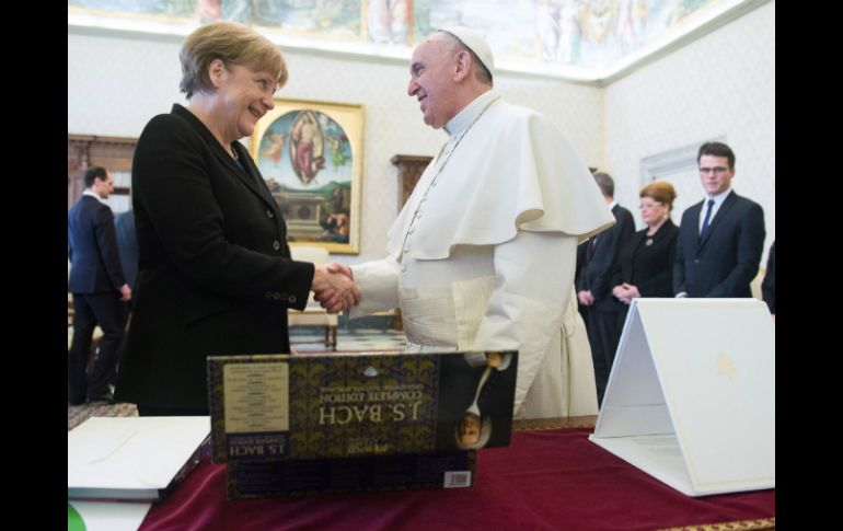 Internacional | Hablan de pobreza y migración, así como de una solución al conflicto de Ucrania El Papa Francisco y Angela Merkel se reúnen en el Vaticano Hablan de pobreza y migración y se comprometen a encontrar una solución al conflicto de Ucrania Por: AFP 21 de febrero de 2015 - 08:57 hs CIUDAD DEL VATICANO (21/FEB/2015).- El Papa Francisco recibió este sábado en el Vaticano a la canciller alemana, Angela Merkel, para una audiencia privada durante la cual hablaron de pobreza y migración y se comprometieron a encontrar una ''solución pacífica'' del conflicto de Ucrania. La audiencia, que duró 40 minutos, particularmente larga, se centró en temas de carácter internacional como ''la lucha contra la pobreza y el hambre, la explotación de los seres humanos'', indicó en un comunicado el Vaticano. Los dos líderes hablaron en particular de la situación en Europa y subrayaron el propio ''compromiso para lograr una solución pacífica del conflicto en Ucrania'', recalca la nota vaticana. La líder alemana, hija de un pastor protestante, celebra una serie de reuniones en Europa para preparar la agenda de la cumbre en junio próximo del G-7 con los dirigentes de las siete mayores economías del mundo: Estados Unidos, Canadá, Alemania, Francia, Reino Unido, Italia y Japón, con los que desea abordar temas como pobreza y migración. Merkel, que se reunió por segunda vez en audiencia privada con el Papa argentino, había adelantado durante su tradicional mensaje semanal por internet, que creer en Dios le da ''apoyo'', orientación" y ''confianza''. Al término del encuentro, durante el tradicional intercambio de regalos, la canciller alemana entregó un sobre con una donación económica destinada a los hijos de refugiados, dijo. También le obsequió al papa una colección de discos del compositor alemán y protestante Johann Sebastian Bach (1685-1750), a lo cual el pontífice respondió con un ''danke'' (gracias en alemán). Por su parte el Papa le regaló las medallas del pontificado y su primera encíclica ''Evangelii Gaudium'' (2013), traducida al alemán, lo que sorprendió a la mandataria. Merkel presentó luego a los miembros de la delegación que la acompañan, formada de unas 16 personas y encabezada por la embajadora alemana ante la Santa Sede, Annette Schavan. Después de su encuentro con el Pontífice argentino, Merkel se entrevistó con el secretario de Estado vaticano, el cardenal Pietro Parolin. La visita de la canciller alemana se concluyó con la visita a la sede del movimiento católico de la Comunidad de San Egidio, en el barrio romano de Trastevere, donde fue recibida por el fundador Andrea Riccardi. Un encuentro significativo ya que se trata de un movimiento conocido como la ''ONU de Trastevere'' por su mediación en numerosos conflictos en África y Centroamérica. Temas Europa Ciudad del Vaticano Angela Merkel Ucrania Pobreza Migración Papa Francisco Lee También Vinculan a proceso al joven acusado de homicidio en el CCH Sur Actividades GRATIS en CDMX para celebrar Halloween y Día de Muertos Alfredo Olivas en La México: ¿cuánto tiempo es la fila de espera para comprar boletos? Papa León XIV alerta sobre el uso del hambre como arma y llama a la acción mundial Recibe las últimas noticias en tu e-mail Todo lo que necesitas saber para comenzar tu día Registrarse implica aceptar los Términos y Condiciones
