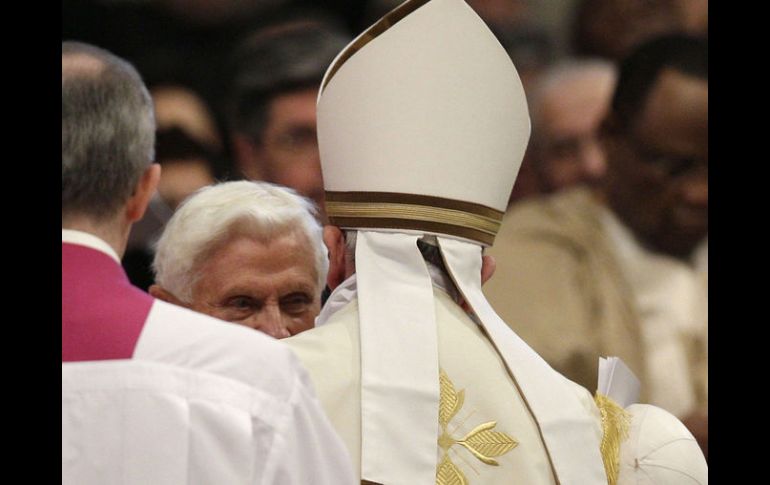 Internacional | El Papa emérito asiste al nombramiento de 19 cardenales El Papa Francisco y Benedicto XVI, juntos en San Pedro El Papa emérito asiste al nombramiento de 19 cardenales Por: EFE 22 de febrero de 2014 - 03:47 hs El Papa emérito Benedicto XVI saluda al Papa Francisco en la Basílica de San Pedro. AP / CIUDAD DEL VATICANO (22/FEB/2014).- El papa Francisco abrazó hoy al papa emérito Benedicto XVI en la Basílica de San Pedro, en una ceremonia pública para el nombramiento de 19 cardenales en la que, por primera vez en la Historia, se encuentran dos pontífices. Joseph Ratzinger, vestido con un abrigo blanco sobre sotana del mismo color y con el solideo blanco, se ha situado en la primera fila, al lado de los puestos de los miembros del Colegio cardenalicio. El papa emérito ha sido saludado "con afecto y veneración" por el nuevo cardenal y Secretario de Estado, Pietro Parolin. En el discurso inicial, Parolin le dijo: "encantados de su presencia ente nosotros", unas palabras que provocaron un largo aplauso entre los presentes en la Basílica vaticana. El próximo día 28 de febrero se cumple un año de la renuncia de Benedicto XVI al pontificado y desde entonces vive en el convento Matter Eclesiae junto a su fiel secretario y discípulo, el arzobispo Georg Ganswein, y las cuatro laicas consagradas de la comunidad "Memores Domini" que se ocupan de su aposento, de su correspondencia y de recibir sus escasas y discretas visitas. El papa emérito que lleva "una vida oculta al mundo" se ha encontrado cuatro veces con Francisco "oficialmente", por lo que su presencia hoy en Basílica de San Pedro ha resultado la gran sorpresa de la ceremonia de la nombramiento de cardenales. Temas Europa Ciudad del Vaticano Papa Benedicto Papa Francisco Recibe las últimas noticias en tu e-mail Todo lo que necesitas saber para comenzar tu día Registrarse implica aceptar los Términos y Condiciones