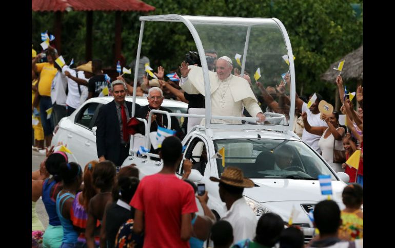 Internacional | El Pontífice fue recibido por autoridades, un coro de niños y cientos de fieles El Papa aterriza en Santiago de Cuba El Pontífice fue recibido por autoridades, un coro de niños y cientos de fieles Por: EFE 21 de septiembre de 2015 - 18:53 hs No obstante la intensa lluvia, recorrió las calles y saludó a cientos de personas a bordo del vehículo descapotado. EFE / A. Ernesto SANTIAGO DE CUBA (21/SEP/2015).- Tras un paso fugaz por Holguin, el Papa Francisco aterrizó esta tarde en Santiago de Cuba, la segunda ciudad en importancia del país, en el marco de su visita apostólica. Poco antes de las 17:30 horas locales (21:30 GMT), el avión papal tocó tierra en el aeropuerto internacional "Antonio Maceo", donde fue recibido por autoridades locales sin formalidades protocolarias ni discursos, un coro de niños y cientos de fieles. Inmediatamente el Pontífice abordó un vehículo cerrado hasta el ingreso de la ciudad y después cambió por el papamóvil. No obstante la intensa lluvia, recorrió las calles y saludó a cientos de personas a bordo del vehículo descapotado. Su jornada comenzó temprano este lunes, con su viaje de La Habana a Holguin para una misa ante más de 150 mil personas en la Plaza de la Revolución Calixto García y bajo un intenso sol. En su homilía instó a todos a abrirse a Jesús, cuyo mensaje invita a superar los prejuicios y la "resistencia al cambio". Más tarde el portavoz vaticano Federico Lombardi aclaró que el Papa no quiso enviar un mensaje político específico. Además estableció que cuando prepara sus sermones, el líder católico piensa en los cristianos en general y siempre pide cambiar, empezando por cada quien. "Se puede aplicar a múltiples contextos", añadió. Al finalizar la celebración eucarística, Francisco se movilizó en papamóvil con dirección al obispado de Holguin, y al llegar hizo una parada en la catedral de San Isidro y admiró una escultura de Juan Pablo II que está en su atrio. Tras almorzar con su delegación y reposar, pasadas las 15:30 (20:30 GMT), abordó el papamóvil y se trasladó seis kilómetros hasta la Loma de la Cruz, emblemático monte desde donde se observa toda la región en una sugestiva vista a 360 grados. Allí el Papa se detuvo unos 15 minutos y cumplió un acto de bendición de toda la ciudad, tras lo cual se trasladó de nuevo al aeropuerto para tomar el avión que lo condujo a esta ciudad de Santiago. Por la tarde de este lunes su agenda prevé un encuentro privado con obispos en el Seminario de San Basilio y un momento de oración en el santuario de la Virgen de la Caridad del Cobre. Temas América Latina Iglesia Cuba Papa Francisco Lee También Evangelio de hoy: Jesús se deja encontrar en nuestro sufrimiento Romería de la Virgen de Zapopan: “Pido que haya paz en el país” Chivas y América empatan en partido amistoso 'Chicharito' marca su primer gol al América en partido amistoso Recibe las últimas noticias en tu e-mail Todo lo que necesitas saber para comenzar tu día Registrarse implica aceptar los Términos y Condiciones