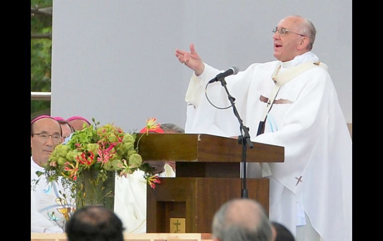 Internacional | La invitación tuvo lugar dentro de la VI Jornada de la Juventud de Asia El Papa pide a los jóvenes construir una Iglesia 'humilde' y 'misionera' La invitación tuvo lugar dentro de la VI Jornada de la Juventud de Asia Por: EFE 17 de agosto de 2014 - 15:30 hs SEÚL, COREA DEL SUR (17/AGO/2014).- El Papa Francisco pidió hoy construir una Iglesia católica más "humilde" y "misionera" en la fortaleza de Haemi, al oeste de Corea del Sur, donde una multitudinaria misa ha puesto fin al sexto encuentro de los jóvenes católicos de Asia. "Junto a vuestros obispos y sacerdotes, dedicad estos años a construir una Iglesia más misionera, más humilde y más sagrada", reclamó el Pontífice en una homilía a los seis mil jóvenes de 23 países de toda Asia que han asistido a la VI Jornada de la Juventud de Asia (JJA). El Papa expresó su deseo de edificar "una Iglesia que ama y adora a Dios, tratando de servir a los pobres, los solitarios, los enfermos y los marginados" a los jóvenes asiáticos, la mayoría ataviados con chubasqueros para protegerse de la ligera lluvia en la misa celebrada al aire libre. También aludió al lema de esta edición de las JJA, "¡Despertad!", al instar a los jóvenes a estar alerta ante "las presiones, las tentaciones y los pecados propios" y también les invitó a discernir "los aspectos de la vida contemporánea que son pecaminosos, corruptos y conducen a la muerte". La misa de clausura de la JJA de 2014 contó con la presencia de 45 mil personas en total, entre los jóvenes venidos de toda Asia y los feligreses surcoreanos que se unieron a la celebración. La ceremonia tuvo lugar junto a la fortaleza de Haemi, unos 150 kilómetros al sur de Seúl, donde en el siglo XIX fueron ejecutados miles de mártires católicos. Tras la intervención en inglés de Jorge Mario Bergoglio algunos representantes de los jóvenes tomaron la palabra en vietnamita, indonesio, japonés, hindi o coreano. El pasado viernes Francisco tuvo su primer encuentro con los jóvenes de la JJA en el Santuario de Solmoe, al oeste del país, donde ofreció un discurso y respondió a las preguntas de los asistentes en una ceremonia amenizada por actuaciones musicales. La Jornada de la Juventud Asiática, que ha durado cinco días en total, es el equivalente de Asia de la Jornada Mundial de la Juventud (JMJ) y se celebró por primera vez en 1999 en Tailandia con el objetivo de conectar a los jóvenes católicos del continente, que cuenta con unos 137 millones de fieles. El viaje de Bergoglio a Corea del Sur, que comenzó el jueves y finalizará mañana, se considera histórico al ser el primero en 25 años de un Papa a este país que alberga a 5,4 millones de fieles de esta religión. Temas Asia Corea del Sur Iglesia Católica Jóvenes Papa Francisco Lee También ¿Cuál será la ruta de la Romería de Zapopan 2025? Mundial Sub-20: EU golea a Italia y enfrentará a Marruecos Dr. Simi llega al Vaticano; le entregan peluche al Papa León XIV Cierres viales por la Romería 2025 comienzan este jueves Recibe las últimas noticias en tu e-mail Todo lo que necesitas saber para comenzar tu día Registrarse implica aceptar los Términos y Condiciones