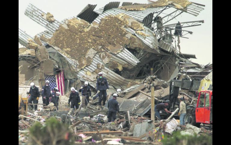 Internacional | Tal era la fuerza del fenómeno que pudo haber destruido edificios y carreteras El tornado que devastó Oklahoma tenía la categoría más alta Tal era la fuerza del fenómeno que pudo haber destruido edificios y carreteras, de acuerdo con los metereólogos Por: EL INFORMADOR 22 de mayo de 2013 - 00:29 hs OKLAHOMA, ESTADOS UNIDOS (22/MAY/2013).- Autoridades federales validaron en 321-337 kilómetros por hora la velocidad estimada máxima de los vientos del tornado que azotó Oklahoma, lo que lo coloca como un EF-5 en la escala Fujita mejorada, la categoría más poderosa para un meteoro. En plena incertidumbre por las labores de rescate, Amy Elliot, portavoz de la Oficina Forense de Oklahoma, confirmó que 51 personas habían muerto, incluidos 20 niños, pero advirtió de que su agencia esperaba al menos otros 40 muertos, lo que provocó que varios medios hablasen de 91 muertos. Horas después, revisaron y redujeron a 24 la cifra de víctimas tras el tornado que asoló el lunes el Sur de la capital. Elliot revisó así a la baja las últimas informaciones oficiales, que indicaban que había 51 fallecidos y cientos de heridos a causa del tornado de más de 320 kilómetros y categoría EF5. No obstante, indicó que a medida que continúe el trabajo de los bomberos y equipos de emergencia es probable que el número de fallecidos vuelva a ascender. Al menos siete de los nueve niños fallecidos eran alumnos de la escuela elemental Plaza Towers, en Moore, el pequeño suburbio a las afueras de Oklahoma City que fue el más afectado, cuyo colegio quedó reducido a escombros, y donde se ha rescatado a algunos menores. El presidente Barack Obama calificó el desastre de “uno de los tornados más destructivos de la historia”, pese a que: “Aún no sabemos hasta dónde llegan los daños y las pérdidas humanas y económicas que pueden haber ocurrido”. “En un instante, destruyó edificios e hizo que docenas de personas perdieran la vida”, entre ellos nueve niños que “trataban de refugiarse en el lugar más seguro que conocían: su escuela”. “Todos los afectados enfrentan un largo camino por delante, en muchos casos con una pena enorme, pero no están solos. Su país viajará con ustedes, agarrados a nuestra fe”. Obama conversó el lunes con la gobernadora Mary Fallin, y ayer hizo lo mismo con el alcalde de Moore, Glenn Lewis, “para dejar claro que Oklahoma tendrá todos los recursos que necesitan a su disposición”. EFE NUMERALIAEn detalle24: El número de muertos, incluidos al menos nueve niños. 200 heridos, por lo menos, entre ellos decenas de infantes. 200 voluntarios buscaron a los sobrevivientes. 16 minutos entre el momento en que se emitió la advertencia a las 14:40 horas del lunes y el instante en el que tocó tierra en Newcastle, duró el tornado. Fuentes: Autoridades de Emergencia en Moore, Oklahoma, y el Laboratorio de Tormentas Severas en Norman, Oklahoma. > REACCIONES Francisco, Ban Ki-moon, la UE y gobiernos se solidarizanBOGOTÁ, COLOMBIA.- El Papa Francisco; el secretario general de la ONU, Ban Ki-moon; la Comisión Europea y varios gobiernos se solidarizaron con Estados Unidos por la pérdida de vidas humanas y los daños materiales causados por el tornado que el lunes asoló Oklahoma City. En un mensaje enviado al arzobispo de dicha ciudad, Paul S. Coakley, el secretario de Estado del Vaticano, Tarcisio Bertone, transmitió la “profunda preocupación” con la que el Pontífice sigue las noticias sobre las consecuencias del “devastador” tornado. Por su parte, el secretario general de la ONU, Ban Ki-moon, lamentó “profundamente la muerte y destrucción que dejó en Oklahoma City el paso del tornado” y envió “sus condolencias a los familiares de las víctimas y los afectados”. La Comisión Europea expresó sus condolencias por el impacto del tornado por medio de un mensaje del presidente del Ejecutivo comunitario, José Manuel Durao Barroso, que también Costa Rica, Colombia y Honduras se unieron. Con información de EFE y AFP Temas Norte América Tornados EU Estados Unidos Lee También ¿Bad Bunny fuera del Super Bowl? Este sería el show alternativo Poza Rica, inundado por desbordamiento del río Cazones Bad Bunny permanece sentado durante "God Bless America" y enciende las redes Lista actualizada de selecciones que ya clasificaron al Mundial 2026 Recibe las últimas noticias en tu e-mail Todo lo que necesitas saber para comenzar tu día Registrarse implica aceptar los Términos y Condiciones