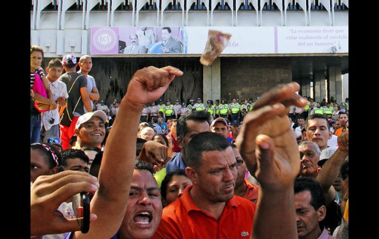 CARACAS, VENEZUELA (16/DIC/2016).- La eliminación de los billetes de 100 bolívares y los problemas de escasez de alimentos, medicinas y otros bienes generaron el viernes violentas protestas y conatos de saqueos en seis ciudades y poblados de Venezuela que dejaron al menos 32 detenidos.Las localidades surorientales del Callao, Tumeremo, Guasipati fueron escenario de violentos disturbios que culminaron en saqueos de más de una decena de supermercados, pequeños comercios y licorerías protagonizados por decenas de personas que protestaban por el retiro de los billetes de 100 bolívares y la falta de combustible, agua, medicinas y alimentos, indicó a The Associated Press el alcalde del Callao, Coromoto Lugo.Los disturbios comenzaron desde mediados de la mañana y se han extendido durante todo el día. Las fuerzas militares y policiales se trasladaron al poblado del Callao, a unos 600 kilómetros al sur de Caracas, para tratar de restablecer el orden en esa localidad, donde se han registrado los disturbios más violentos.Sobre las motivaciones que generaron las protestas, Lugo dijo que "aquí hay muchos detonantes. La falta de medicinas, la falta de combustible, falta de agua, la delincuencia, la falta de comida, y a esto se suma lo billetes de 100 bolívares". En el Callao, 25 personas fueron arrestadas dentro de un comercio, precisó el alcalde.Durante la mañana se registraron en la ciudad de Maracaibo, la segunda mayor del país, unos conatos de saqueos de comercios que fueron controlados rápidamente por los cuerpos de seguridad. Los incidentes tuvieron como detonante el malestar causado por la falta de atención a los usuarios que pernoctaron a las afueras de la sede del Banco Central en Maracaibo para canjear los billetes de 100 bolívares (15 centavos de dólar).El secretario de seguridad de la gobernación del estado Zulia, Biagio Parisi, informó que los incidentes dejaron al menos un lesionado y siete detenidos.Entre numerosas quejas de escasez de dinero en efectivo, los venezolanos iniciaron este viernes la adaptación a una nueva realidad que implicó la desaparición del billete de 100 bolívares, el de mayor denominación en la inflacionaria economía del país.Con billetes de 50, 20, 10 y 5 bolívares los venezolanos compensaron la desaparición del papel moneda de mayor denominación a la espera de que las autoridades comiencen la emisión de las nuevas partidas monetarias que implicarán el lanzamiento, en una primera etapa, de los billetes de 500 bolívares.En los comercios, los transportes públicos, y las ventas callejeras se observaron cómo los clientes realizaban sus transacciones con denominaciones más bajas, aunque eran recurrentes las quejas sobre la escasez de efectivo."Nos han pagado con los billetes viejos sin problemas pero muchos pasajeros que están quejando de que no consiguen efectivo en los cajeros", afirmó Xavier Peralta, un chófer de un microbús.A las recurrentes filas que realizan con regularidad los venezolanos a las afueras de los supermercados, las farmacias, y los comercios para adquirir los productos básicos, ahora se sumó una nueva: las filas que deben realizar los clientes dentro de los locales comerciales para cancelar las compras con tarjeta de débito o crédito."Esperé por quince minutos en la cola para pagar con mi tarjeta de débito. Esto es un error garrafal. “¿Hasta cuándo vamos hacer colas para todo?", dijo molesto el comerciante Guillermo Contreras.Indicó que la eliminación de los billetes de 100 bolívares "debió hacerse con más planificación" para evitar que muchos perdieran su dinero. "Primero tenían que sacar los billetes nuevos y luego sacar los viejos de circulación", acotó.El presidente Nicolás Maduro ratificó la eliminación de estos billetes a partir de este viernes, y aseguró que la medida busca combatir a las "mafias económicas" que operarían en Colombia y Estados Unidos dedicadas al contrabando de moneda.De igual forma, Maduro extendió por 72 horas más el cierre de las fronteras con Colombia y Brasil, que se acordó a inicios de semana, para combatir el contrabando.Entre el martes y el jueves la banca venezolana realizó un canje masivo de billetes de 100 bolívares como parte del proceso de eliminación de esa denominación. A partir de este viernes y por espacio de cinco días se permitirá el depósito del referido billete en las sedes del Banco Central de Venezuela.La eliminación del billete de 100 coincidió con el anuncio que realizó el Banco Central de Venezuela de que a partir del 15 de diciembre se lanzaría la denominación de 500 bolívares y que progresivamente se irían incorporando los billetes de mil, dos mil, cinco mil, 10 mil y 20 mil.Los venezolanos enfrentan el proceso de canje de billetes en medio de un contexto de una desbordada inflación de tres dígitos y serias dificultades de escasez de alimentos y otros bienes que se han extendido al dinero en efectivo.