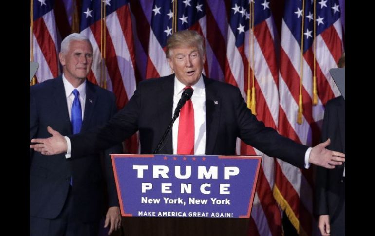 ESTADOS UNIDOS (09/NOV/2016).- "Ha llegado la hora de unirnos como un solo pueblo", fue una de las frases que más encendió a la audiencia del primer discurso de Donald Trump como virtual ganador de las elecciones de Estados Unidos.Al iniciar su mensaje, el republicano se disculpó por hacer esperar a sus seguidores, y se explicó diciendo que recién había recibido la llamada de la candidata demócrata Hillary Clinton."Nos llevaremos bien con todas las naciones, que deseen hacerlo con nosotros", enunció en otra parte de su discurso en el que fue interrumpido por constantes aplausos.Además, prometió que sería "un presidente para todos los estadounidenses" y que pondría especial énfasis al mejoramiento de la infraestructura del país y el cuidado de los veteranos.+Sigue la cobertura especial con resultados a detalle