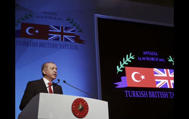 ESTAMBUL, TURQUÍA (25/MAR/2017).- El presidente de Turquía, Recep Tayyip Erdogan, advirtió hoy de que, una vez celebrado el referéndum constitucional el próximo 16 de abril, podría convocarse otro plebiscito para decidir sobre la continuidad del proceso de adhesión de su país a la Unión Europea (UE)."Nosotros hacemos el 16 de abril un referéndum, al igual que se hizo uno sobre el brexit (en el Reino Unido). Después podemos iniciar la vía hacia otro referéndum respecto a las negociaciones (con la UE)"."La nación tomará la decisión que sea y adoptaremos esa decisión", dijo Erdogan en un discurso en un foro de la ciudad meridional de Antalya, transmitido en directo por la cadena NTV.No es la primera vez que el presidente turco lanza esta idea, que ya avanzó varias veces en junio y noviembre pasados.Erdogan vinculó la opción de abandonar las negociaciones a la manifestación de grupos izquierdistas que se realizó hoy en Berna, la capital de Suiza, en la que se vio, entre banderas de la guerrilla kurda, una pancarta con un retrato del presidente turco con una pistola y la frase: "Mata a Erdogan con sus propias armas"."Miren lo que pasó hoy ante el Parlamento de Suiza: unas organizaciones terroristas de extrema gravedad ponen ahí, ante el Parlamento, mi imagen con un arma al lado. ¿Tiene lógica? ¿Puede entenderse? Eso es en Suiza, pero hay muchos como ellos", dijo el mandatario.El Ministerio de Exteriores turco también reaccionó hoy a esa manifestación y esta tarde citó al encargado de negocios de la embajada suiza en Ankara para expresarle sus quejas por la pancarta, informa la cadena NTV.Se espera que mañana el Ministerio cite al propio embajador, Walter Haffner, que hoy se hallaba fuera de Ankara, según esa cadena.