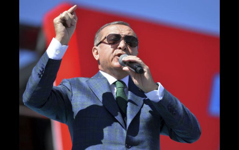 ANKARA, TURQUÍA (03/ABR/2017).- El presidente turco Recep Tayyip Erdogan instó este lunes a sus compatriotas residentes en Europa a dar "una respuesta a los nietos del nazismo" votando "sí" en el referéndum sobre el aumento de sus poderes.Durante un discurso en Rize, en el norte del país, el jefe del Estado elogió la movilización de los turcos en Europa, que ya empezaron a votar para el referéndum previsto para el 16 de abril en Turquía y cuya participación es, según él, superior a la registrada en elecciones precedentes."Sean más numerosos y digan 'sí' en las urnas", declaró Erdogan. "Den la respuesta necesaria a quienes hacen presión utilizando métodos fascistas, a los nietos del nazismo", sentenció.Estas declaraciones coinciden con una situación tensa en las relaciones entre Turquía y la Unión Europea (UE) a raíz de la prohibición de mítines pro-Erdogan en varios países europeos, como Alemania y Holanda.Erdogan ha tildado estas decisiones de "prácticas nazis" en varias ocasiones y ha denunciado un "espíritu de fascismo descontrolado" en Europa."No permitiremos que tres, cinco fascistas europeos hieran el honor de este país", exclamó Erdogan en su discurso.En el citado referéndum, los turcos deben expresarse a favor o en contra de una reforma constitucional destinada a reforzar considerablemente los poderes presidenciales, con la supresión del puesto de primer ministro entre otras medidas.