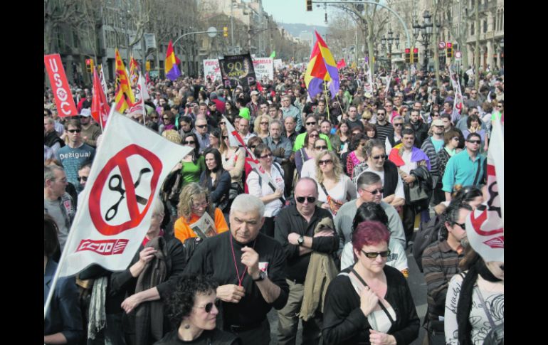 Internacional | Decisiones llevan a camino peligroso, afirman Españoles toman las calles contra recortes Por segunda ocasión, los trabajadores protestan contra lo que consideran marca un grave retroceso social y un ataque del Gobierno Por: EFE 12 de marzo de 2012 - 02:51 hs Empleados protestan ante las medidas que pretende aplicar Mariano Rajoy. / MADRID, ESPAÑA (12/MAR/2012).- Miles de españoles salen a las calles para protestar por las reformas laborales que implantará el jefe del Gobierno Mariano Rajoy el próximo día 29, que los sindicatos califican como una regresión. Convocados por los dos principales sindicatos españoles, CCOO y UGT, ciudadanos de todo el país comenzaron a salir a las calles para protestar, por segunda vez en un mes, contra la reforma laboral y lo que consideran un “ataque” del Gobierno a los servicios públicos. La de ayer es la segunda movilización de esas características que convocan las organizaciones sindicales españolas tras la del pasado 19 de febrero que tuvo una participación multitudinaria. Las nuevas protestas se producen, además, dos días después del anuncio de una huelga general contra la reforma laboral para el próximo día 29, por lo que los sindicatos esperan lograr una estimación de la capacidad de convocatoria de cara a esa jornada. En Madrid, donde se espera la más alta participación, los secretarios generales de CCOO, Ignacio Fernández Toxo, y de UGT, Cándido Méndez, advirtieron, antes del inicio de la marcha, de que la reforma laboral va a provocar una regresión social “de manera permanente y para toda la vida”. La reforma laboral aprobada por el Gobierno de España reduce la indemnización para trabajadores fijos que sean despedidos de forma improcedente desde los actuales 45 días por año trabajados a sólo 33, con un máximo de 24 mensualidades, en lugar de las 42 de ahora. EL OTRO PODERSindicatos despliegan fuerza Los mítines son el primer despliegue de fuerza sindical antes de una huelga general programada para el 29 de marzo en oposición a las reformas y medidas de austeridad recientemente aprobadas. Las reformas, aprobadas por decreto el mes pasado y confirmadas en el Parlamento este jueves, reducen el costo de despedir trabajadores y facilitan las condiciones bajo las que pueden ser cesados. Temas Europa España Manifestaciones en el mundo Mariano Rajoy Recibe las últimas noticias en tu e-mail Todo lo que necesitas saber para comenzar tu día Registrarse implica aceptar los Términos y Condiciones