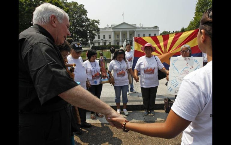 Internacional | La SB 1070 invade responsabilidad del Gobierno federal Estados Unidos defiende querella contra Ley Arizona La mandataria Jan Brewer anuncia la cancelación de la reunión anual de los gobernadores de 10 entidades de México y Estados Unidos Por: NTX 8 de julio de 2010 - 06:21 hs Líderes religiosos y miembros de Promesa Arizona, creada para luchar contra la Ley SB 1070, rezan frente a la Casa Blanca. EFE / WASHINGTON, ESTADOS UNIDOS (08/JUL/2010).- La Casa Blanca rechazó ayer que la demanda contra la ley de migración de Arizona haya tenido algún tipo de motivación política, como sugirieron legisladores republicanos, luego de que este martes el Departamento de Justicia impugnara esa legislación, que está previsto que entre en vigor el 29 de julio. “El presidente no ha hecho una determinación sobre migración basado en lo que es popular, y el Departamento de Justicia no presentó esta demanda basado en lo que es popular, sino en lo que es correcto”, dijo el portavoz Robert Gibbs. El vocero presidencial insistió en que el mandatario Barack Obama se mantiene firme en la necesidad de “tener una amplia reforma migratoria, y no creo que sólo los latinos mantienen ese punto de vista”. Gibbs dijo que la querella fue consecuencia del hecho de que la Lay SB 1070 invade una responsabilidad exclusiva del Gobierno federal, “y no podemos tener un remedo de leyes estatales”. “La única manera en que vamos a resolver esto es a través de una amplia reforma migratoria”. La demanda de Washington fue repudiada por legisladores republicanos, quienes acusaron a Obama de ignorar la situación que enfrentan estados como Arizona frente a la migración ilegal y la voluntad de los norteamericanos. “Los estadounidenses deben preguntarse si la administración Obama está realmente comprometida en asegurar la frontera cuando demanda a un Estado que está tratando sólo de proteger a su gente”, indicó el martes un grupo de 20 legisladores en una carta al procurador general Erick Holder. Gibbs desestimó la misiva y dijo que los republicanos harían una mejor causa si se sentaran con los demócratas en el Congreso a negociar una reforma migratoria que resuelva este problema. Por otro lado, la gobernadora de Arizona, Jan Brewer, canceló ayer la reunión anual de los gobernadores de 10 estados de México y Estados Unidos, programada para finales de año en su Entidad. Los seis mandatarios de los estados fronterizos de México estaban renuentes a asistir debido a su oposición a la nueva ley de Arizona que criminaliza a los indocumentados. REACCIONES Legisladores contra Barack ObamaPide al presidente más seguridad Si Barack Obama desea un progreso real en el tema migratorio, “podría hacerlo renunciando a la idea de la amnistía (a los ilegales) y centrando sus acciones en la seguridad fronteriza e interior”, dijo el líder de la minoría republicana en el Senado, Mitch McConnell. Que mejor ayude a Arizona El líder republicano en la Cámara de Representantes, John Boehner, afirmó que el Gobierno federal en lugar de demandar a Arizona debía ayudar a esa Entidad y otras a “que frenen el crimen y la ilegalidad a lo largo de la frontera”. Temas Norte América Arizona Ley antiinmigrantes Estados Unidos Lee También Revelan llamada al 911 con que se reportó la muerte de Diane Keaton SMN advierte lluvias y bajas temperaturas en México esta semana Organismo internacional prevé tensión comercial a nivel global en 2026 Raymond toca tierra como ciclón post-tropical Recibe las últimas noticias en tu e-mail Todo lo que necesitas saber para comenzar tu día Registrarse implica aceptar los Términos y Condiciones