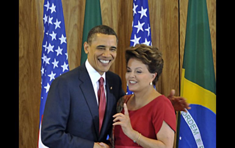 Internacional | Visita de Barack Obama Estados Unidos y Brasil estrechan relaciones Dilma Rousseff aprovecha la reunión para pedir que su país sea miembro permanente del Consejo de Seguridad de la ONU Por: AFP 20 de marzo de 2011 - 01:49 hs BRASILIA, BRASIL (20/MAR/2011).- Barack Obama, presidente de Estados Unidos y Dilma Rousseff, mandataria de Brasil, sentaron las bases para estrechar la relación bilateral entre ambas naciones. A su vez, la anfitriona pidió una reforma del Consejo de Seguridad de la ONU, que su país aspira a integrar de forma permanente. La visita de Obama a la capital brasileña estuvo marcada por su anuncio del inicio de una “acción militar limitada” de fuerzas estadounidenses en Libia, aunque reiteró que no desplegará fuerzas terrestres. Francia, Estados Unidos y Gran Bretaña lanzaron ataques desde el aire y el mar contra objetivos en Libia para intentar contener una ofensiva del régimen de Muamar Gadhafi contra los rebeldes que ocupan varias ciudades. Junto a Rousseff, Obama destacó que Brasil como miembro del Consejo de Derechos Humanos de la ONU “se unió a Estados Unidos en la condena a los abusos de los derechos humanos en Libia”. Sin embargo, Brasil, que es miembro temporario del Consejo de Seguridad y actualmente preside sus sesiones, se abstuvo el jueves en la votación de la resolución 1973 impulsada por Washington, París y Londres, que autorizó el uso de la fuerza en Libia. Rousseff aprovechó la visita de Obama a su país para reiterar la principal reivindicación brasileña en el plano internacional: integrar de forma permanente un Consejo de Seguridad de Naciones Unidas ampliado. “Defendemos una reforma fundamental en el diseño de la gobernanza global, y la ampliación del Consejo de Seguridad de la ONU”, con la “seguridad de que un mundo multilateral producirá beneficios a la paz de los pueblos”. Temas América Latina Brasil Barack Obama Dilma Rousseff Lee También Fallece Junior Dutra al realizarse cirugía estética en manos de dentista sin licencia José Jerí asume como presidente de Perú Congreso de Perú destituye como presidenta a Dina Boluarte Chivas viaja con ‘Chicharito’ y Robinho al amistoso ante América en Estados Unidos Recibe las últimas noticias en tu e-mail Todo lo que necesitas saber para comenzar tu día Registrarse implica aceptar los Términos y Condiciones