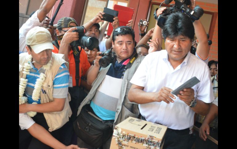 Internacional | El actual presidente fue el primero de los candidatos en emitir su sufragio Evo Morales llama a votar masivamente a bolivianos El actual presidente fue el primero de los candidatos en emitir su sufragio Por: AP 12 de octubre de 2014 - 10:26 hs LA PAZ, BOLIVIA (12/OCT/2014).- Evo Morales, favorito a ganar las elecciones del domingo, fue el primero de los cinco candidatos en emitir su voto y lo hizo en la región cocalera del Chapare en el centro de Bolivia donde lideró a los cocaleros antes de la saltar a la política. "Me siento uno más de los ciudadanos cumpliendo su deber y llamo a todos a participar de las elecciones", dijo a periodistas en Villa 14 de Septiembre, un pequeño poblado del Chapare donde conserva sus tierras y sembradíos, incluyendo coca. Llegó a una escuela a sufragar rodeado de dirigentes cocaleros y periodistas. Besó a los niños y recibió aplausos. Dijo que en la tarde regresará a La Paz para seguir los cómputos. Las encuestas anticipan que ganará en primera vuelta. Las mesas de votación abrieron a las 8.00 (12.00 GMT) y cerrarán después de ocho horas en una jornada electoral tranquila, dijo la presidenta del Tribunal Supremo Electoral, Vilma Velasco. El candidato por la Democracia Cristiana el derechista y ex presidente Jorge Quiroga asistió a una misa antes de emitir su voto. "Hay que comenzar de la mejor manera: escuchando misa", dijo. Quiroga aparece tercero en las encuestas por debajo del magnate del cemento Samuel Doria Medina, de laMorales llama a votar masivamente a bolivianos coalición de centroderecha Unidad Demócrata (UD). Los candidatos de oposición han criticado a la misión de observadores de la OEA que preside el ex presidente de Guatemala Álvaro Colom porque consideran que no tiene la capacidad para identificar y denunciar supuestas irregularidades y favoritismo del Tribunal Electoral con el candidato oficialista. "No creo que la misión de observación electoral de la OEA tenga la menor intención de hacer observaciones que puedan incomodar a nadie, menos al poder que gobierna", dijo Doria Medina en una carta enviada a Colom. Poco más de 6.2 millones de bolivianos fueron convocados a las urnas para elegir al presidente y a un nuevo congreso de 36 senadores y 130 diputados. Es la primera que también elegirán los bolivianos que viven en 33 países. El domingo era una jornada sin transporte, ni comercios; incluso los parques estaban cerrados debido a una disposición de los gobiernos locales. Sólo operaban los vuelos internacionales y los servicios de emergencia en salud. En Bolivia el voto es obligatorio. Para la noche se esperan resultados de conteos rápidos de las cadenas nacionales. El Tribunal electoral dijo que dará a conocer resultados parciales. Temas América Latina Bolivia Evo Morales Elecciones en Bolivia Lee También ¿Quién ganará el partido entre las América y Chivas? Esto dice la IA José Jerí asume como presidente de Perú Congreso de Perú destituye como presidenta a Dina Boluarte Chivas viaja con ‘Chicharito’ y Robinho al amistoso ante América en Estados Unidos Recibe las últimas noticias en tu e-mail Todo lo que necesitas saber para comenzar tu día Registrarse implica aceptar los Términos y Condiciones