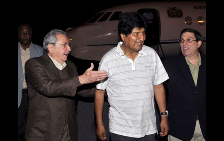 Internacional | El canciller boliviano, David Choquehuanca, viajó con Morales Evo Morales llega a Cuba para saludar a Chávez ''Morales viajó a La Habana para expresar su apoyo al Presidente venezolano Hugo Chávez Frías'', afirmó el diario oficial Juventud Rebelde Por: AP 23 de diciembre de 2012 - 08:06 hs Raúl Castro recibe a Evo Morales en el Aeropuerto Internacional José Martí, en La Habana. AFP / LA HABANA, CUBA (23/DIC/2012).- El presidente de Bolivia, Evo Morales, fue recibido el domingo a su llegada a La Habana por el mandatario Raúl Castro. "Morales viajó a La Habana para expresar su apoyo al Presidente venezolano Hugo Chávez Frías", afirmó el diario oficial Juventud Rebelde en una breve información. En una fotografía que acompaña la información se ve a Morales vestido con una camisa deportiva blanca con rayitas azul claro y flanqueado a su derecha por Castro con una chaqueta color carmelita. Ambos aparecen sonrientes y conversando. Los acompaña a su izquierda el ministro de Relaciones Exteriores de la isla, Bruno Rodríguez, también con una chaqueta oscura. El texto no precisó la hora de la llegada el domingo, pero se ve que fue tomada cuando aún era de noche en la capital cubana. "Durante el fraternal encuentro, ambos mandatarios intercambiaron (opiniones) sobre el excelente estado de las relaciones entre ambos países, y otros temas de la actualidad internacional", agregó Juventud Rebelde. El canciller boliviano, David Choquehuanca, viajó con Morales, indicó el diario cubano.Morales expresó en días pasados el deseo de visitar a su amigo Chávez, pero dijo que esperaba el visto bueno de los médicos para hacerlo. El sábado, el gobierno venezolano aseguró que el estado de salud de Chávez es cada vez más estable a medida que el líder socialista se recupera de una nueva operación a la que se sometió en Cuba por el cáncer que padece. Chávez, de 58 años, fue operado el 11 de diciembre, unos dos meses después de ser elegido para un nuevo mandato presidencial de seis años. Temas América Latina Venezuela Hugo Chávez Bolivia Cuba Evo Morales Recibe las últimas noticias en tu e-mail Todo lo que necesitas saber para comenzar tu día Registrarse implica aceptar los Términos y Condiciones