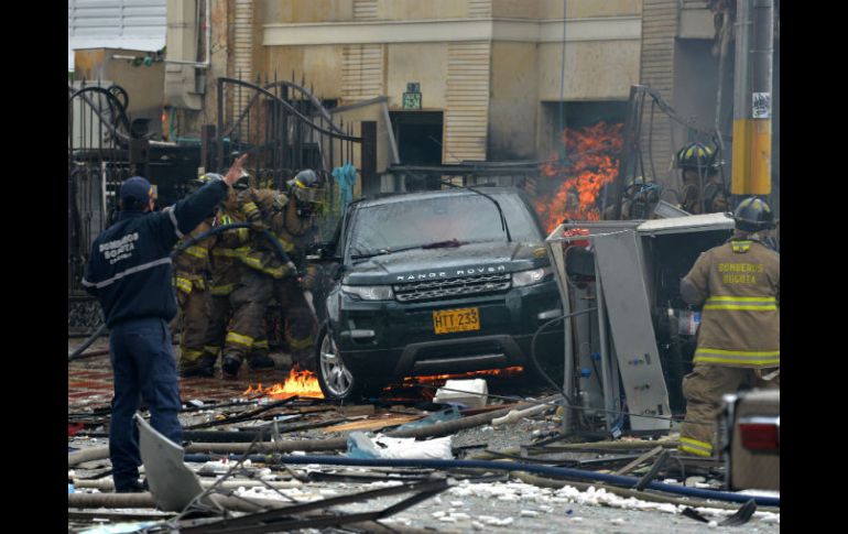 Al menos 60 bomberos realizaron tareas de rescate y sofocaron un incendio que se desató en el lugar de la explosión, informó el director de la organización Jorge Lemus.Informó que la explosión se registró en el barrio San Luis, en el centro de la capital colombiana. La detonación provocó el estallido de vidrios de puertas y ventanas. Testigos dijeron que en el edificio, que quedó destruido, funcionaba un laboratorio."Tenemos el reporte de 18 personas heridas, de ellas ocho fueron trasladas a hospitales" cercanos, indicó Lemus.El jefe de bomberos comentó que en "un momento hubo seis personas que se reportaron como desaparecidas, pero todas ellas fueron localizadas". Versiones preliminares apuntan que la explosión se produjo por la explosión de "dos pipetas de hidrógeno", se informó."Se están realizando labores de refrescamiento para entrar (al lugar de la explosión)" para evaluar la situación y revisar en detalle entre los escombros ", agregó Lemus.La explosión también provocó destrozos en automóviles estacionados en las cercanías de la edificación.