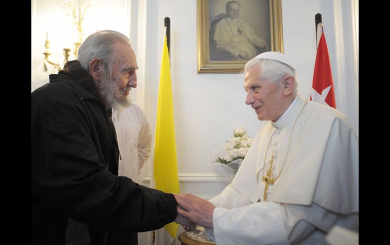 Internacional | La reunión duró media hora y se desarrolló poco después del mediodía Fidel Castro se reunió con el Papa en La Habana Esta fue la primera entrevista entre el líder máximo de la revolución, de 85 años, y Benedicto XVI, de 84. Fidel Castro se había reunido dos veces con Juan Pablo II Por: AFP 28 de marzo de 2012 - 12:01 hs Fotografía de la reunión difundida por El Vaticano. AP / LA HABANA, CUBA (28/MAR/2012).- El Papa Benedicto XVI se reunió este miércoles durante media hora con el padre de la revolución cubana, el ex presidente Fidel Castro en La Habana, en el último día de su visita pastoral a Cuba, informó el portavoz del Vaticano, Federico Lombardi. "El Papa está reunido con Fidel Castro, dijo el portavoz a la prensa. Lombardi dijo después que la reunión duró media hora y se desarrolló poco después del mediodía (17:00 GMT) en la Nunciatura Apostólica, en el barrio diplomático de Miramar, al oeste de La Habana. Esta fue la primera entrevista entre el líder máximo de la revolución, de 85 años, y el papa alemán, de 84. Fidel Castro se había reunido dos veces con Juan Pablo II, en 1996 en el Vaticano, y luego en su histórica visita a Cuba, en 1998. El martes en la noche, Fidel Castro había dicho: "Gustosamente saludaré (...) a Su Excelencia el Papa Benedicto XVI, como lo hice con Juan Pablo II (en 1998)". Fidel Castro está retirado del gobierno desde 2006 por razones de salud. Antes de la reunión, el Papa ofició una misa ante cientos de miles de personas en la Plaza de la Revolución de La Habana, en la que instó al gobierno cubano a seguir ampliando el espacio de la Iglesia católica en la sociedad, incluso en educación. En la misa, el Pontífice reconoció "con alegría que en Cuba se han ido dando pasos para que la Iglesia lleve a cabo su misión insoslayable de expresar pública y abiertamente su fe". "Para poder ejercer esta tarea, (la Iglesia) ha de contar con la esencial libertad religiosa", dijo el Papa en la misa, a la que asistió el presidente Raúl Castro, el canciller Bruno Rodríguez y la jerarquía católica cubana. Temas América Latina Papa Benedicto Cuba Fidel Castro Lee También Cuba tacha de "frágil" el alto al fuego entre Israel y Hamás por esta razón José Jerí asume como presidente de Perú Congreso de Perú destituye como presidenta a Dina Boluarte Chivas viaja con ‘Chicharito’ y Robinho al amistoso ante América en Estados Unidos Recibe las últimas noticias en tu e-mail Todo lo que necesitas saber para comenzar tu día Registrarse implica aceptar los Términos y Condiciones